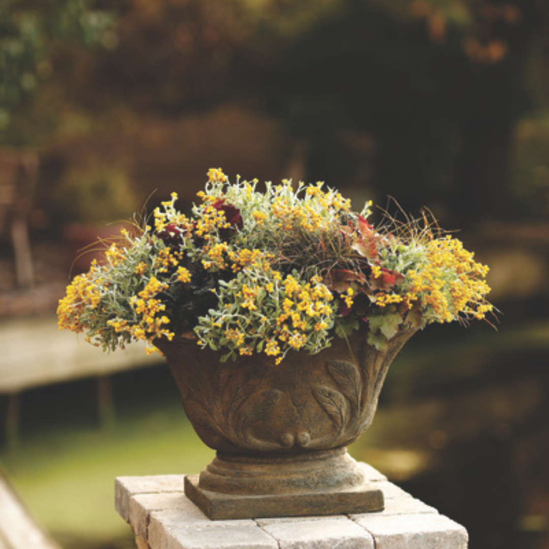 Description: Masses of golden yellow button flowers cover the gray-green foliage that is flocked with silver, from planting to hard frost; excellent for border edges, the garden or containers