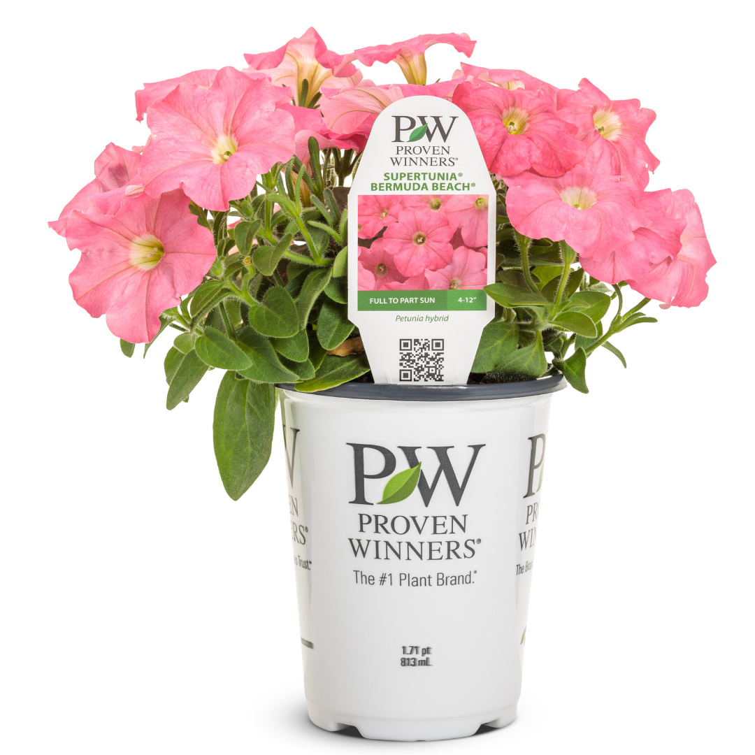 Supertunia® Bermuda Beach Petunia is blanketed in stunning pink trumpet-shaped flowers at the ends of the stems from mid spring to mid fall. Its pointy leaves remain green in color throughout the season.
