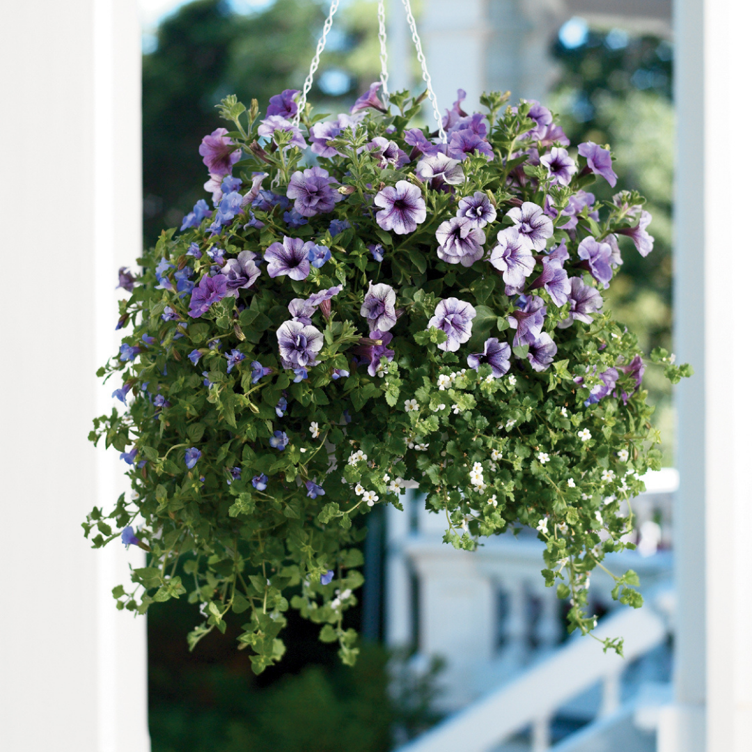 Supertunia® Priscilla Petunia is blanketed in stunning double lavender trumpet-shaped flowers with deep purple veins at the ends of the stems from mid spring to mid fall. Its pointy leaves remain green in color throughout the season.