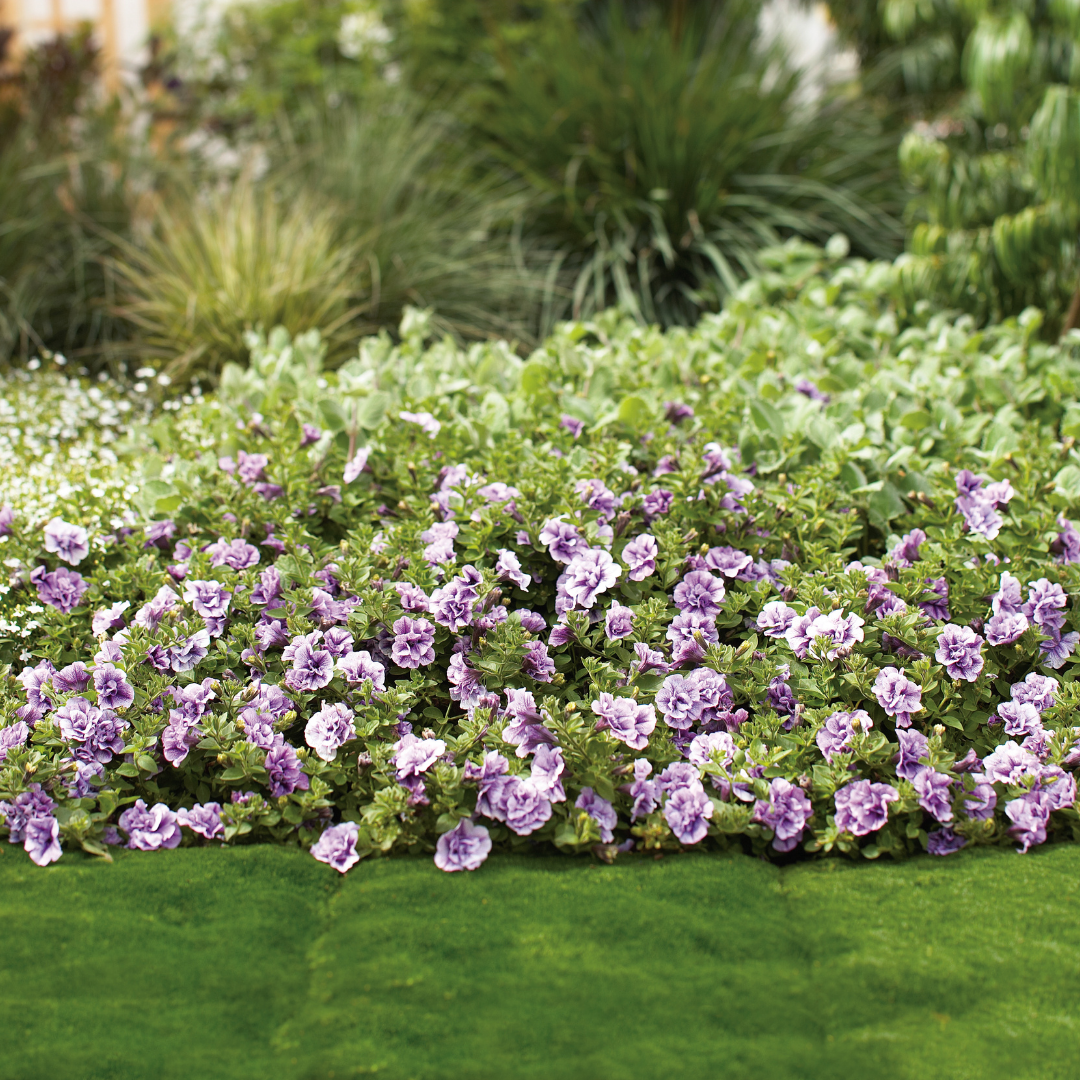 Description: Double lavender flowers with deep purple veins cascade from this mounded-trailing selection; a self-cleaning variety, ideal for hanging baskets, patio containers and window boxes; heat and drought tolerant; can be pruned anytime