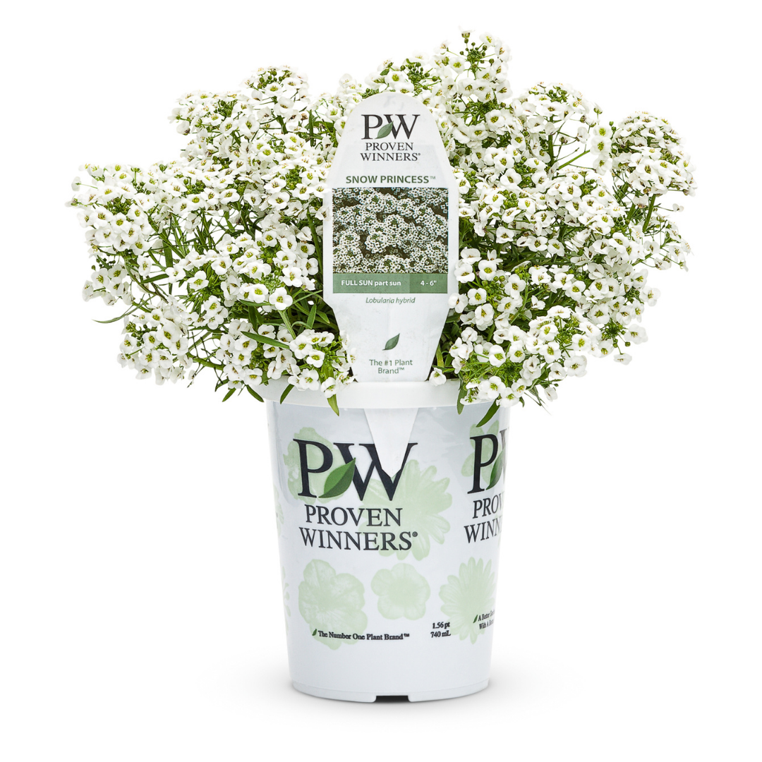 Snow Princess® Alyssum is clothed in stunning clusters of fragrant white star-shaped flowers at the ends of the stems from mid spring to mid fall. Its tiny narrow leaves remain grayish green in color throughout the season.