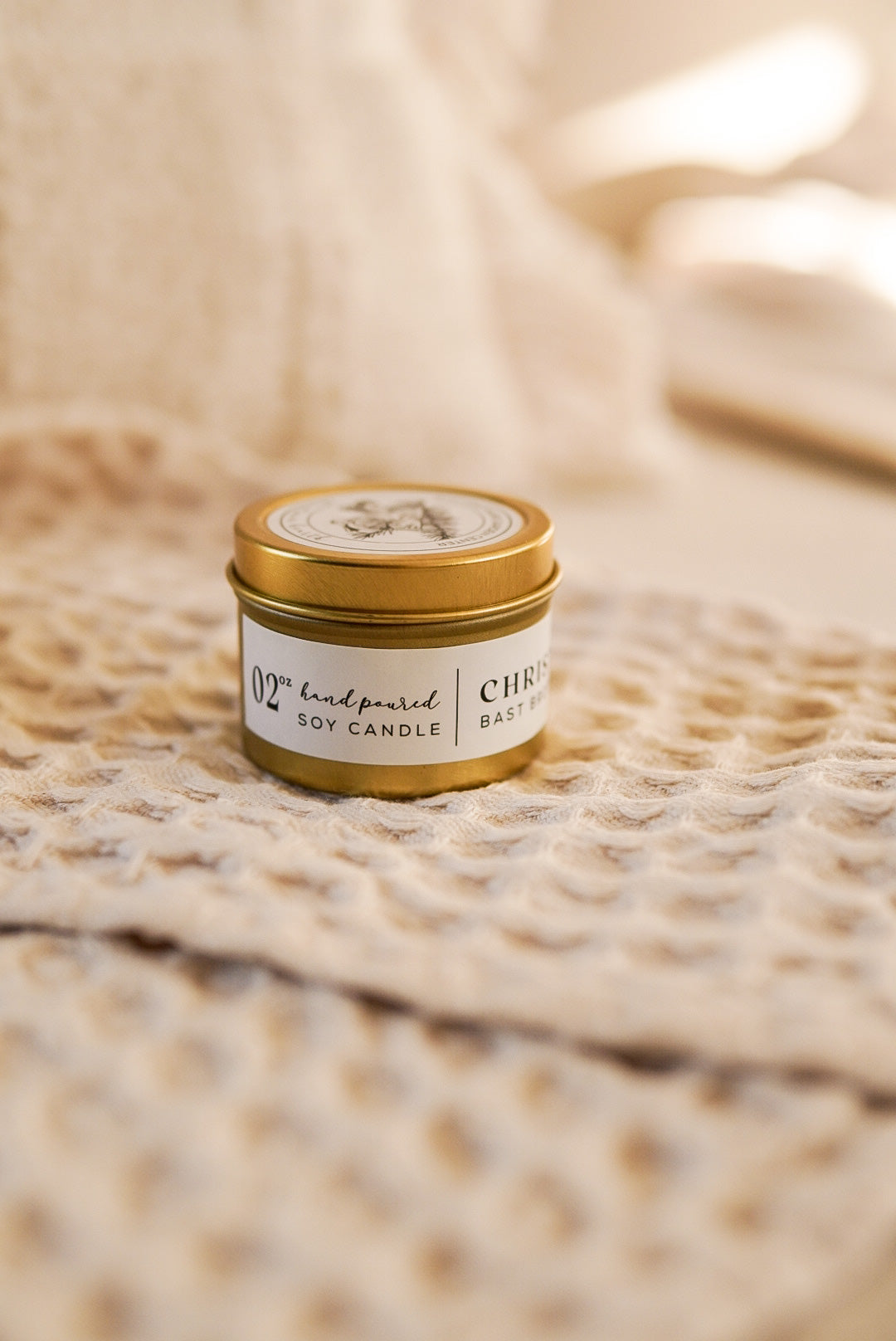 02 Ounce Christmas Hearth Tin Candle, Bast Brothers