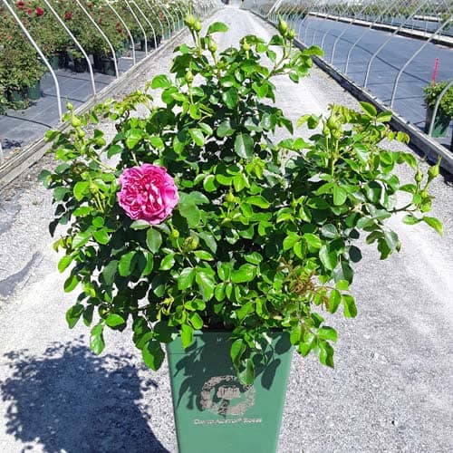 Description: The young flowers are deep pink, almost red, fading to pure rich pink. The rather narrow petals are unusually substantial, with a hint of yellow on their undersides. Held in large, fragrant clusters, they are produced with remarkable freedom. A particularly healthy variety; it forms a bushy, upright shrub with thick, succulent, highly polished foliage.