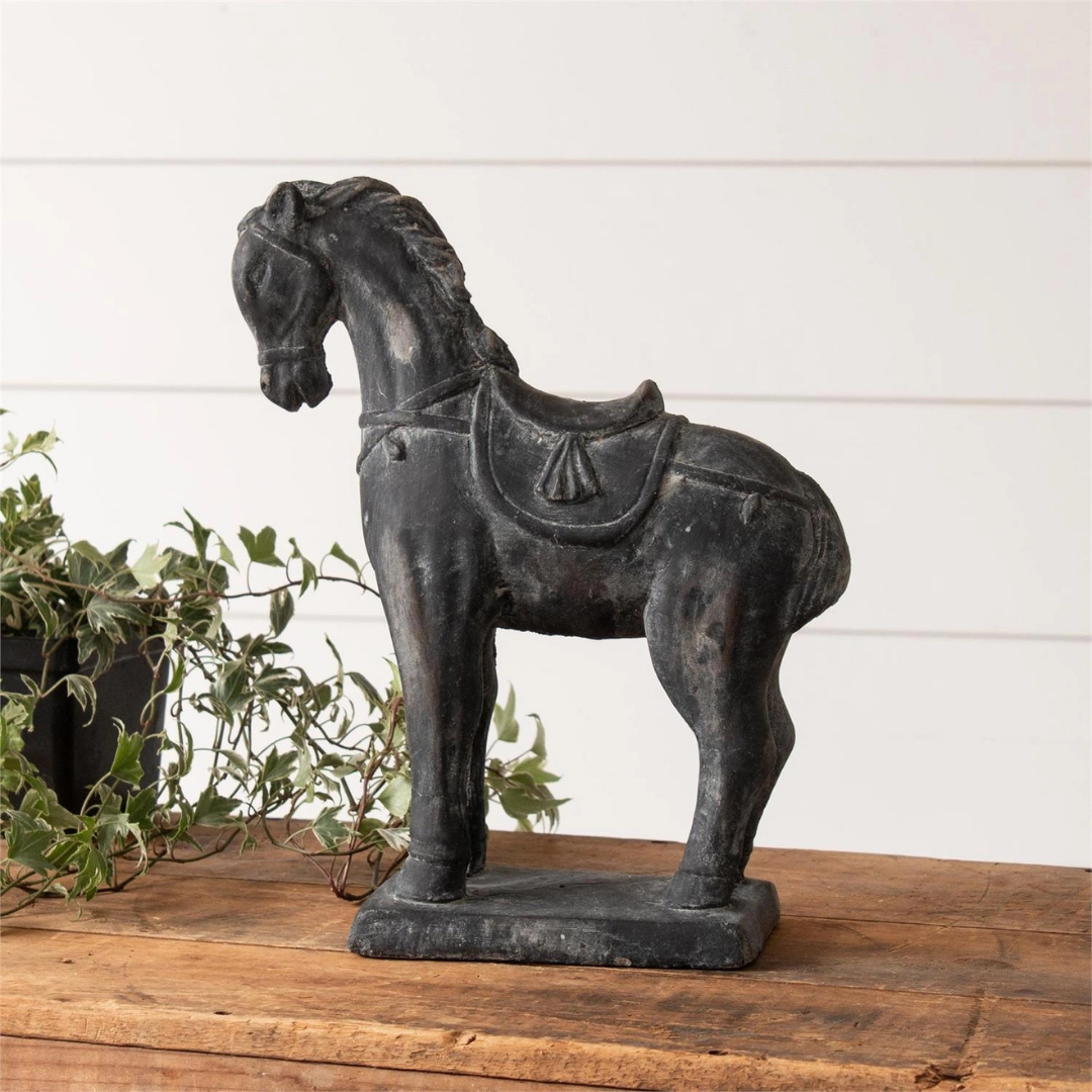 Black Distressed Cement Horse