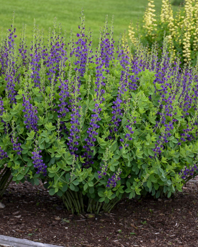 Description: Extraordinary spikes of royal blue pea-flowers rise from medium green foliage in early summer; use this compact selection for its outstanding display of vertical flowers as an accent in the garden or borders.