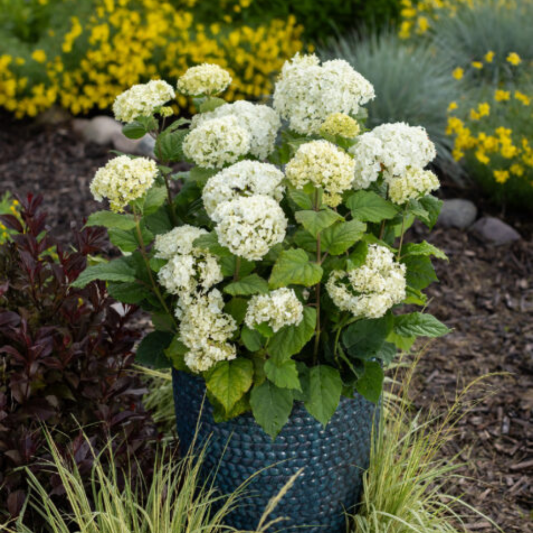 A beautiful selection that features enormous ball-shaped white flower heads in mid summer, lasting for a very long time; great cut flower quality; an excellent focal point in garden beds and landscapes; improved disease resistance; low maintenance