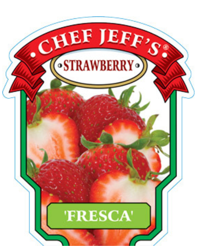 Description: Luscious, juicy and sweet strawberries are produced on this Everbearing variety. Fresca plants will give you 2 and sometimes 3 crops of firm, brilliant berries a season starting in spring and then again in summer and fall. Enjoy the delicious 1 inch berries fresh, chocolate covered, in jam or pie, the uses are endless. The deep green, shiny foliage and large blooms of Fresca are an attractive addition to the landscape, in containers or hanging baskets.