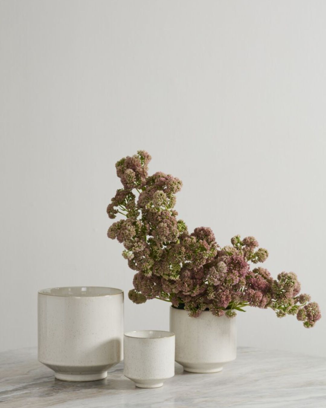 Clean and simple and easy to style anywhere, the Bello Pot is a ceramic cylinder with a low, sleek foot. The glossy white finish has a hint of speckling, and each of the 3 sizes perfectly holds a drop in plant or floral arrangement.