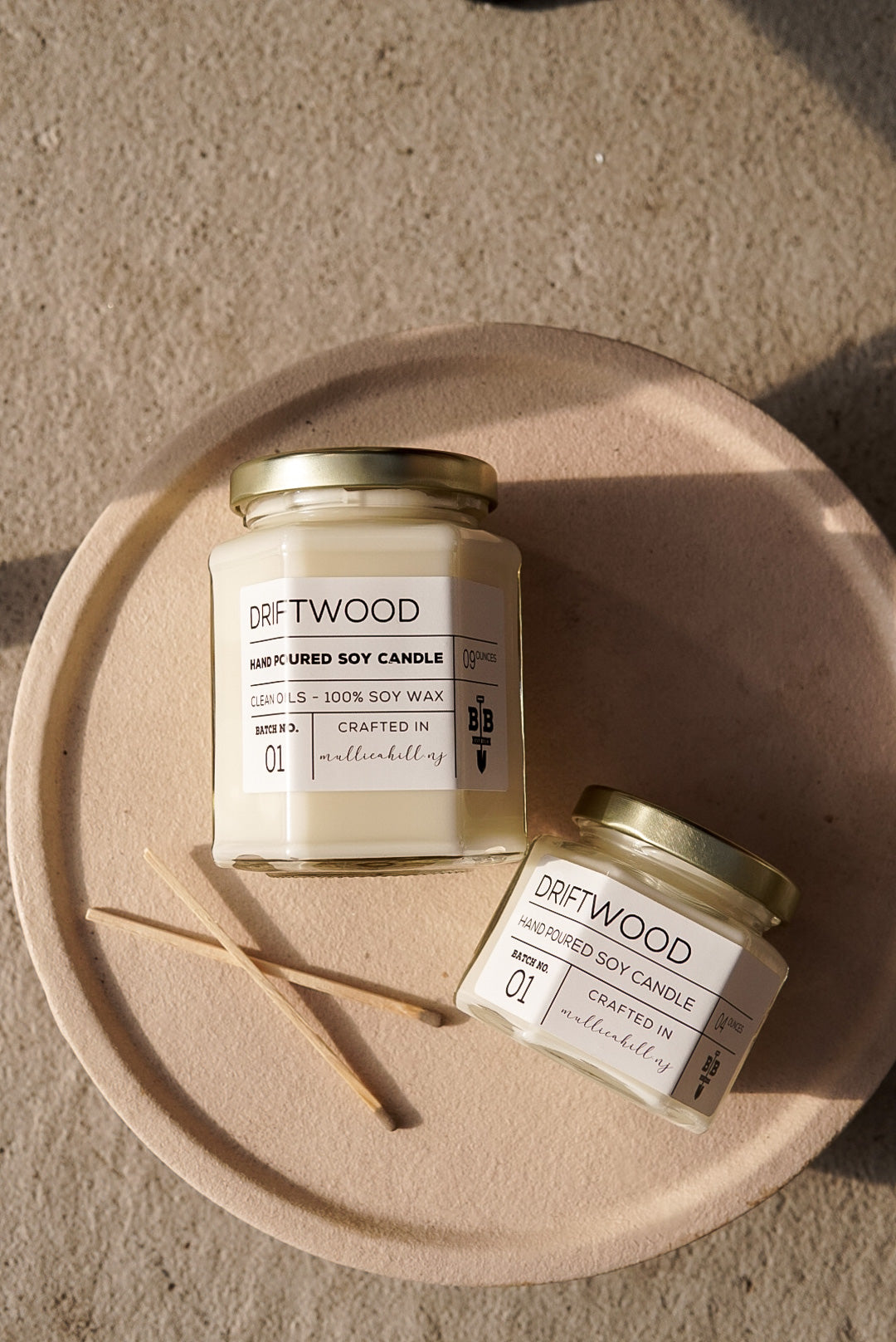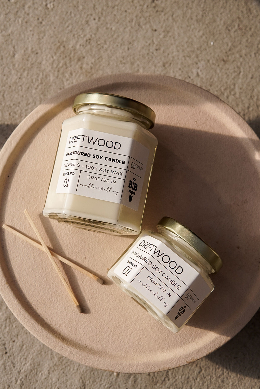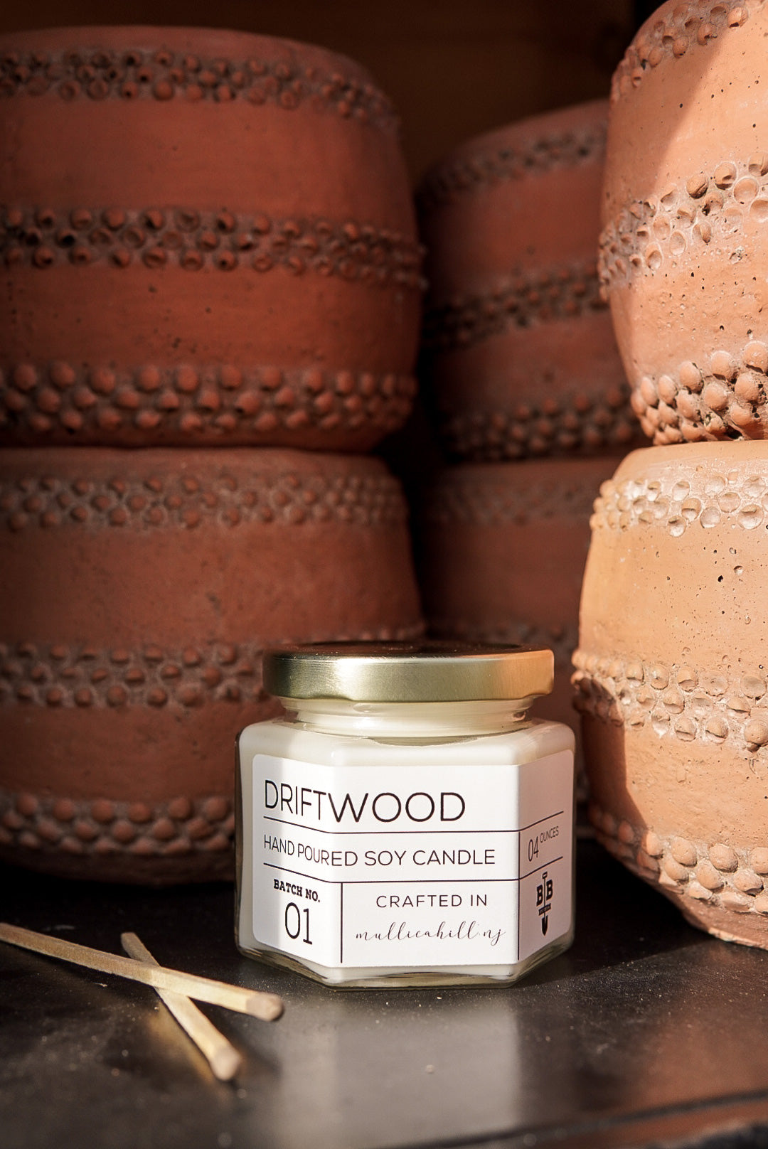 Hand poured, 100% soy candle crafted in Mullica Hill, NJ. Our Driftwood candle is a warm, earthy blend of sandalwood and musk.