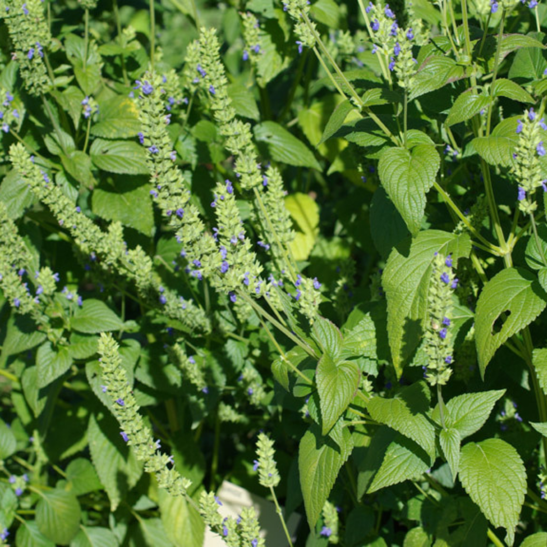 Description: Chia is a plant that everyone has heard of but few people have grown it into a mature plant. Chia is categorized as a superfood, it is high in protein, fiber, Omega-3 fatty acids and contains nine amino acids. Leaves can be eaten as micro-greens and are best young, they become bitter as they mature. Spikes of butterfly attracting and mint scented clusters of purple or white flowers form, mature, and bear the nutritious seeds this plant is known for. Seeds can be saved to be eaten or sprouted. At the end of the season harvest flowers after they have dried and when the petals have fallen off. Store the flowers in a paper bag until completely dry, crush the flowers and seed heads to release the seeds.
