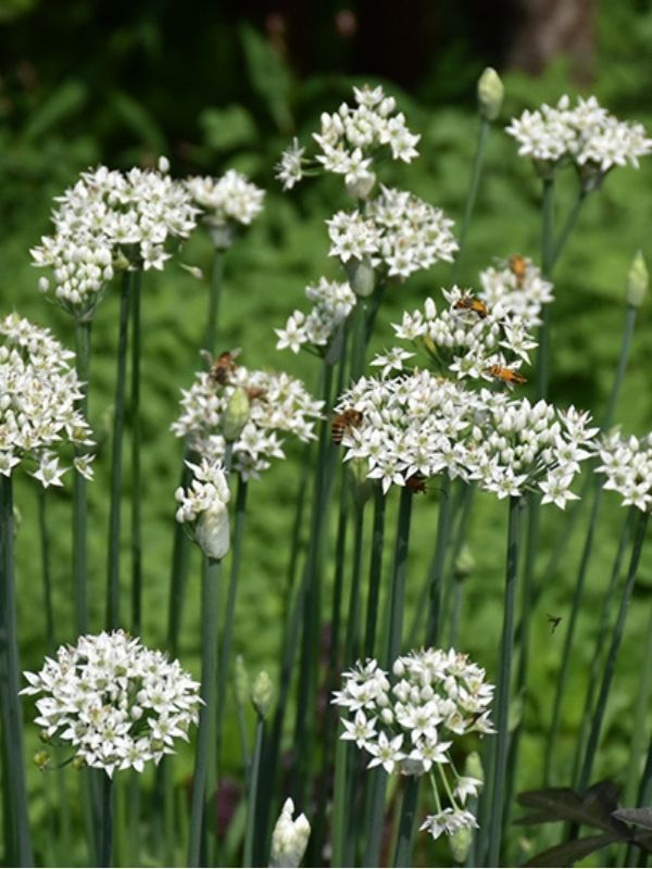 Description: A grass-like perennial herb with thin tubular foliage and edible, fragrant, white flowers in July. The flower buds and leaves can be cut and used in soft cheeses, salads or stir-fries. Great with potatoes and eggs or as a garnish for soups and sauces. Best grown in containers or garden edges in average well-drained soil.