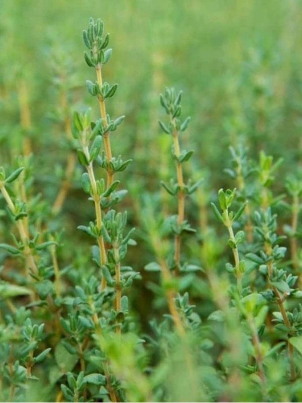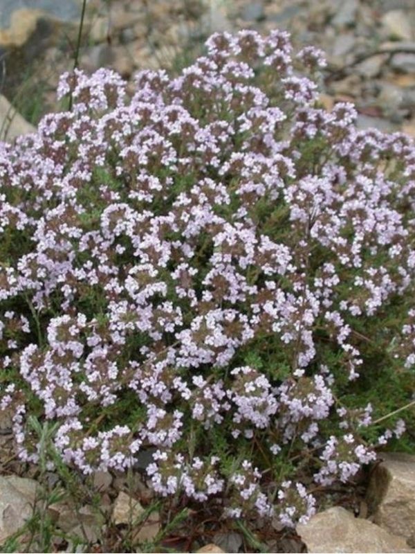 Description: Thyme makes an attractive edging or border. It grows to only six to twelve inches in height. Leaves are dark gray-green in color, and pale pink flowers bloom at the tips of the stems in summer.