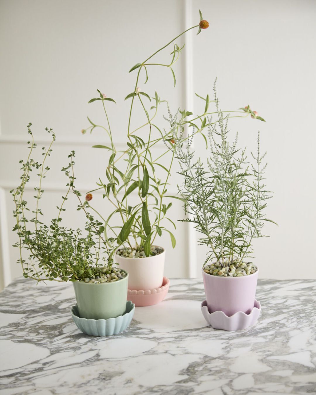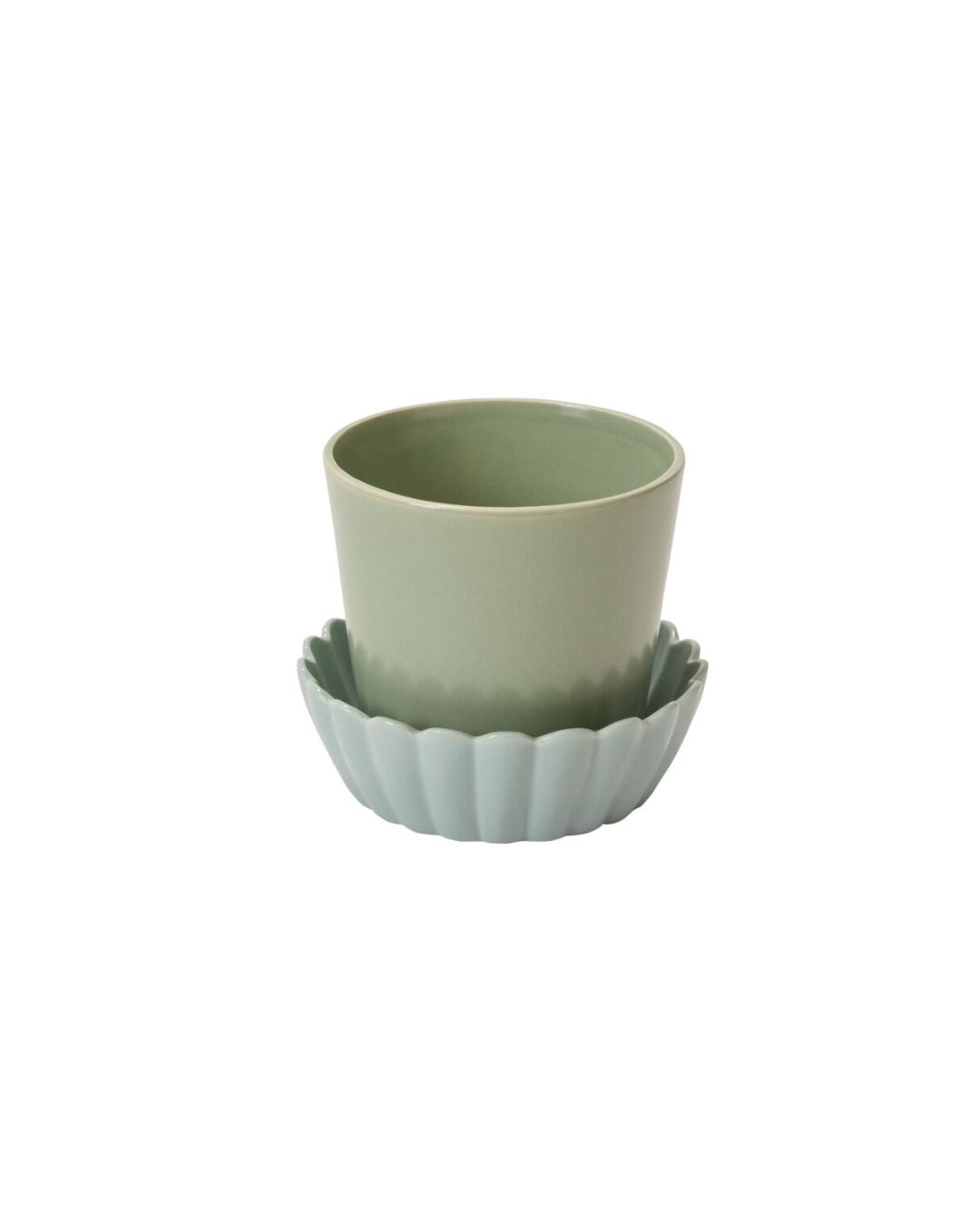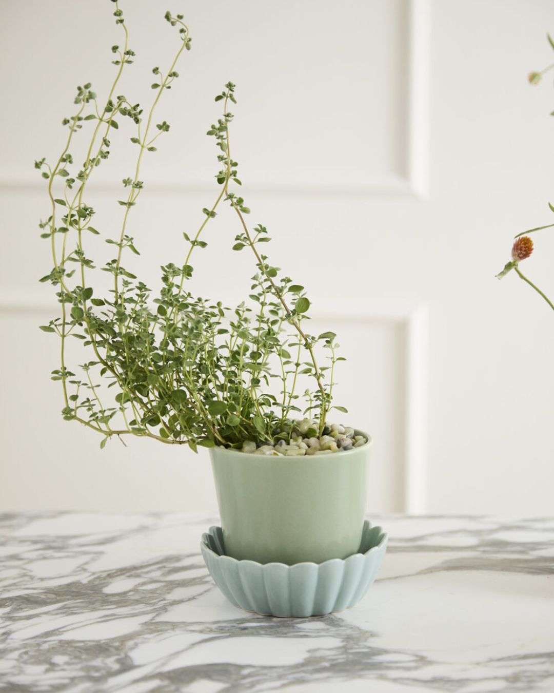 Bring the color of spring & whimsy of nature to your plants with the soft grassy green & pale blue smooth ceramic Springvale Pot & Saucer. This playful piece features a drainage hole & fluted, flower-like saucer. Pair with a 4.5-inch orchid drop-in plant & arrange alongside the other spring colors & fun styles in the Springvale collection.