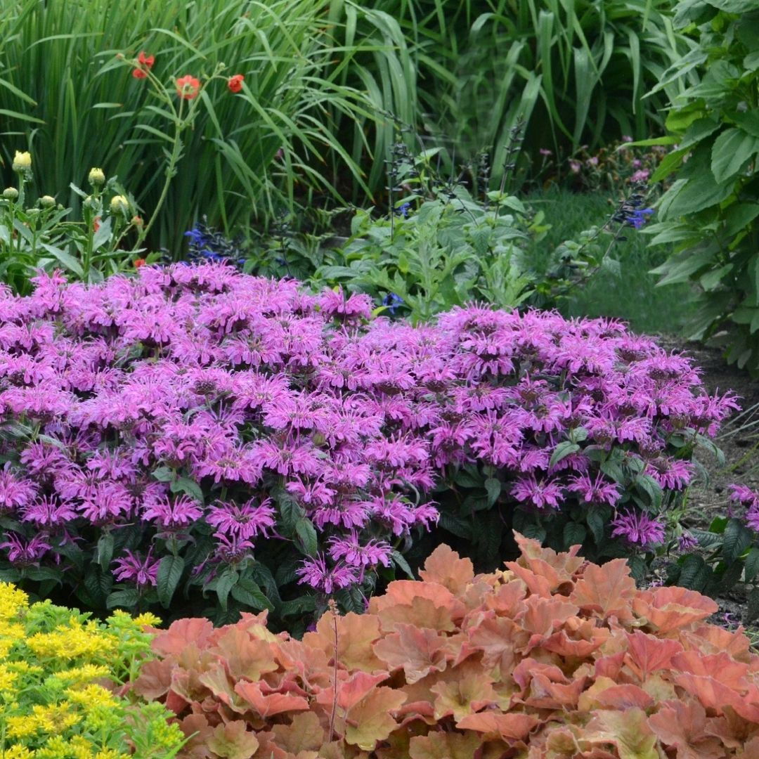 This variety forms a dense, compact mound of magenta-purple flowers, on well branched, strong stems, over lush dark green foliage that has an excellent resistance to powdery mildew; great for massing along border front.
