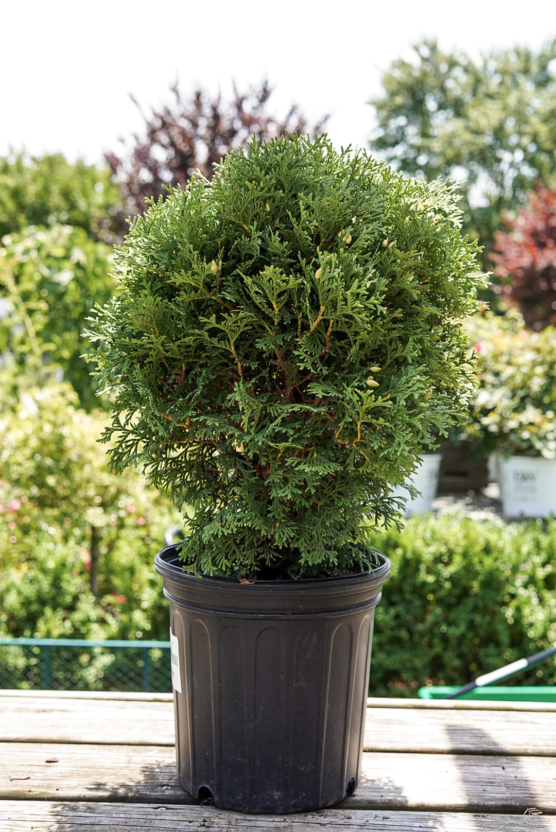Hetz Midget Arborvitae makes a fine choice for the outdoor landscape, but it is also well-suited for use in outdoor pots and containers. It can be used either as 'filler' or as a 'thriller' in the 'spiller-thriller-filler' container combination, depending on the height and form of the other plants used in the container planting. It is even sizeable enough that it can be grown alone in a suitable container. Note that when grown in a container, it may not perform exactly as indicated on the tag - this is to be expected. Also note that when growing plants in outdoor containers and baskets, they may require more frequent waterings than they would in the yard or garden.