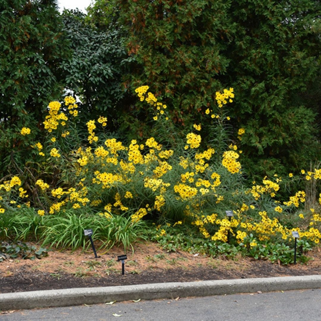 An upright, clumping native variety, producing plentiful, bright yellow daisy-like blooms, above fine, narrow foliage; heat and salt tolerant; excellent for sunny spaces; use in borders, naturalized areas, or along streams and ponds