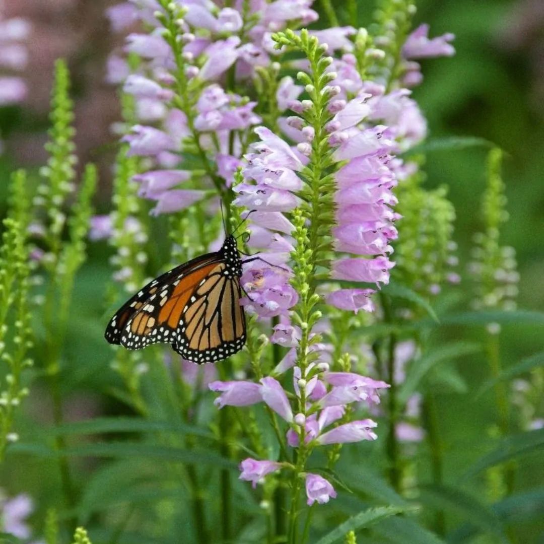 Obedient Plant has masses of beautiful spikes of pink hooded flowers rising above the foliage from mid summer to early fall, which are most effective when planted in groupings. The flowers are excellent for cutting. Its pointy leaves remain dark green in color throughout the season.