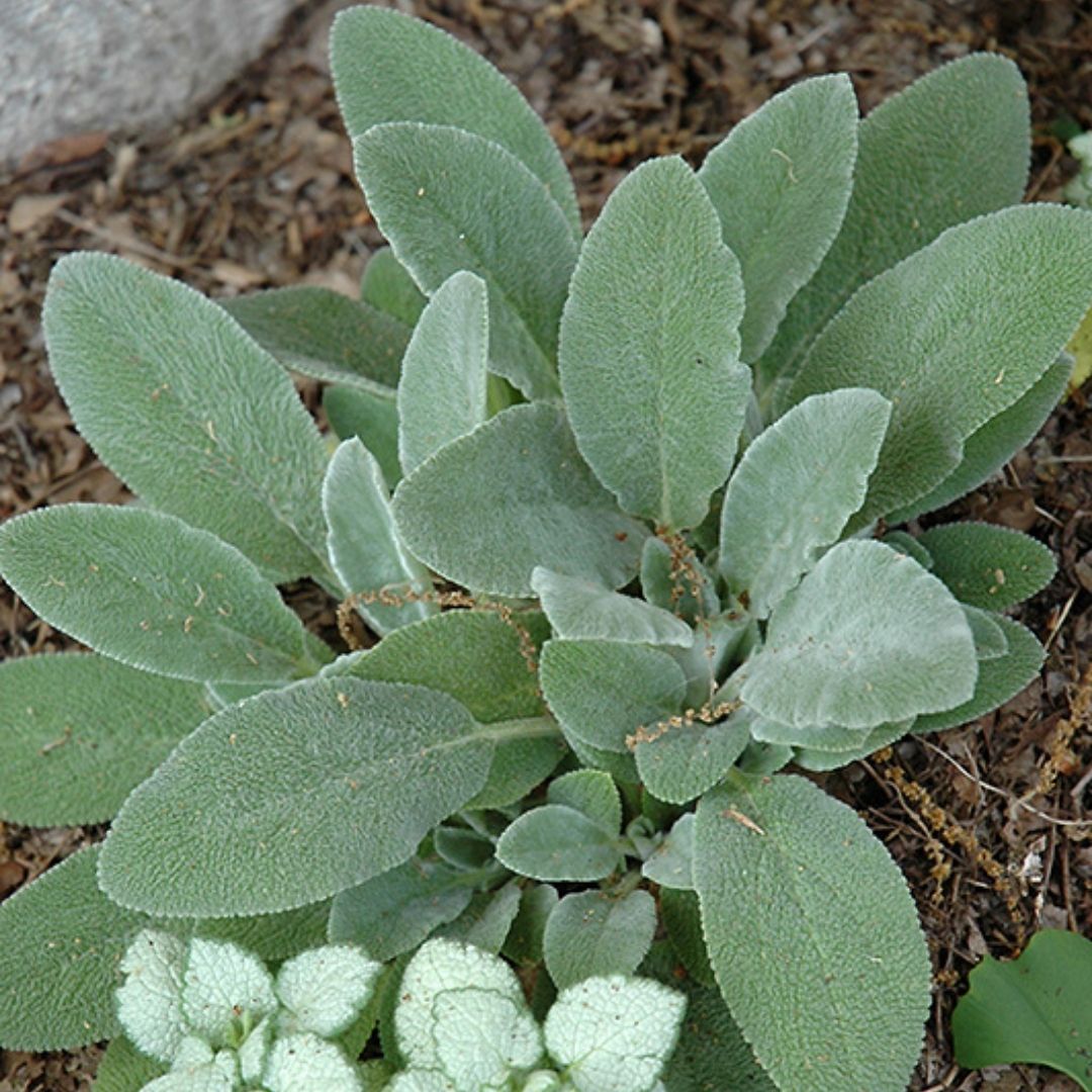 This variety forms a dense carpet of soft and fuzzy silver-green leaves bearing upright spikes of magenta-lavender flowers in early summer; clip spent blooms to tidy up for rest of season; drought tolerant once established; evergreen in mild areas.