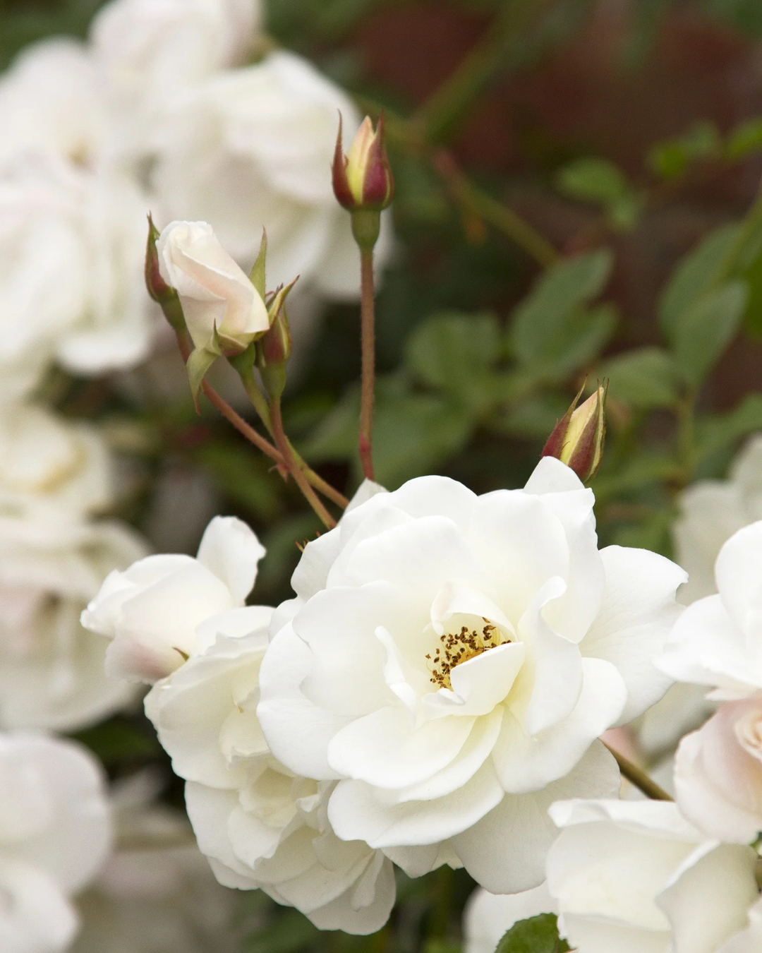 Unquestionably the standard against which white hybrid tea roses are measured, producing an endless abundance of snowy white flowers with a heady fragrance all season long; all roses need full sun and well-drained soil