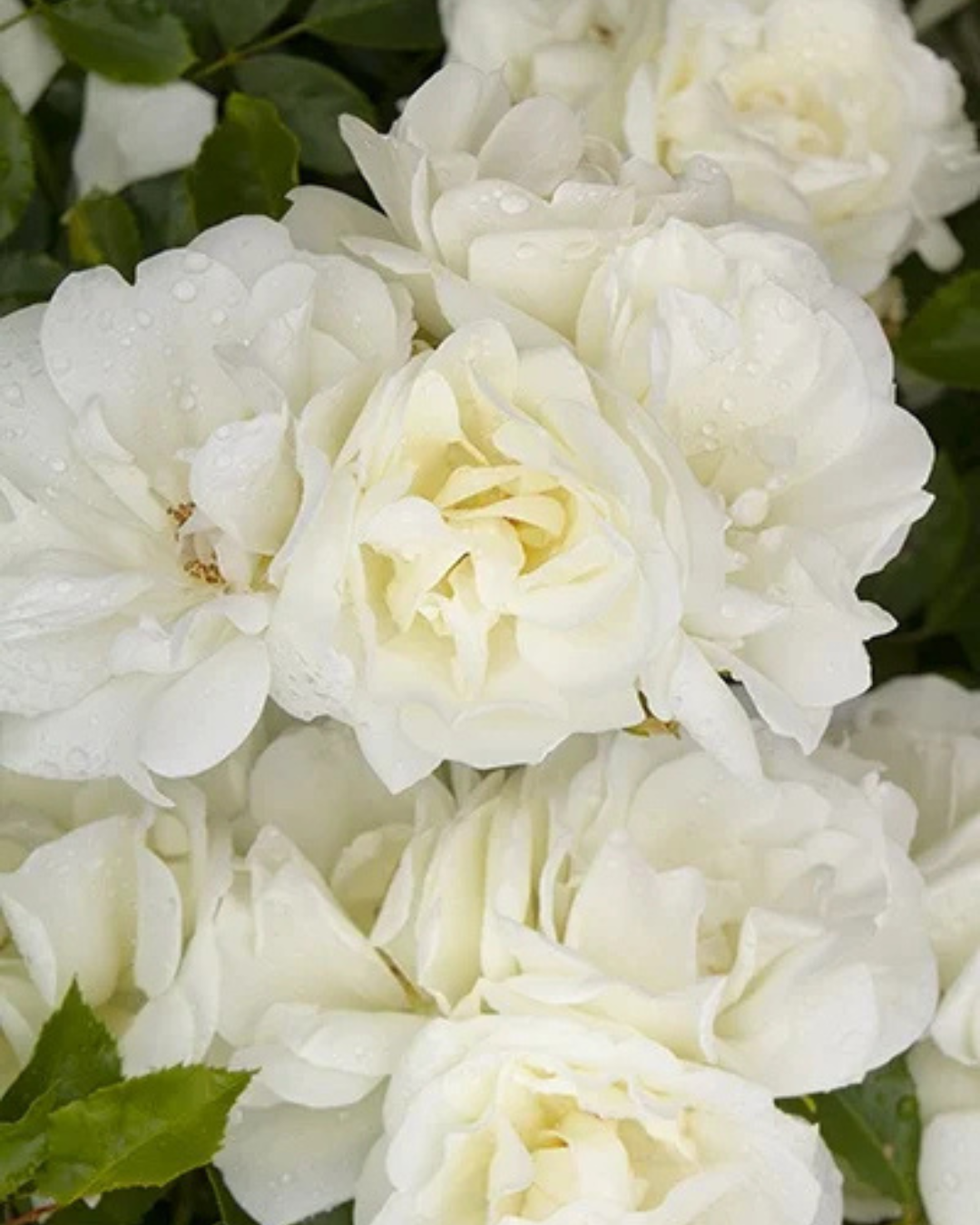 Iceberg Rose is bathed in stunning fragrant fully double pink flowers at the ends of the branches from early summer to mid fall. The flowers are excellent for cutting. It has dark green deciduous foliage. The oval compound leaves turn yellow in fall.