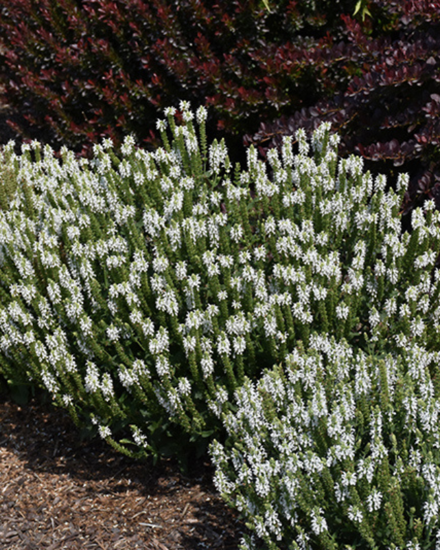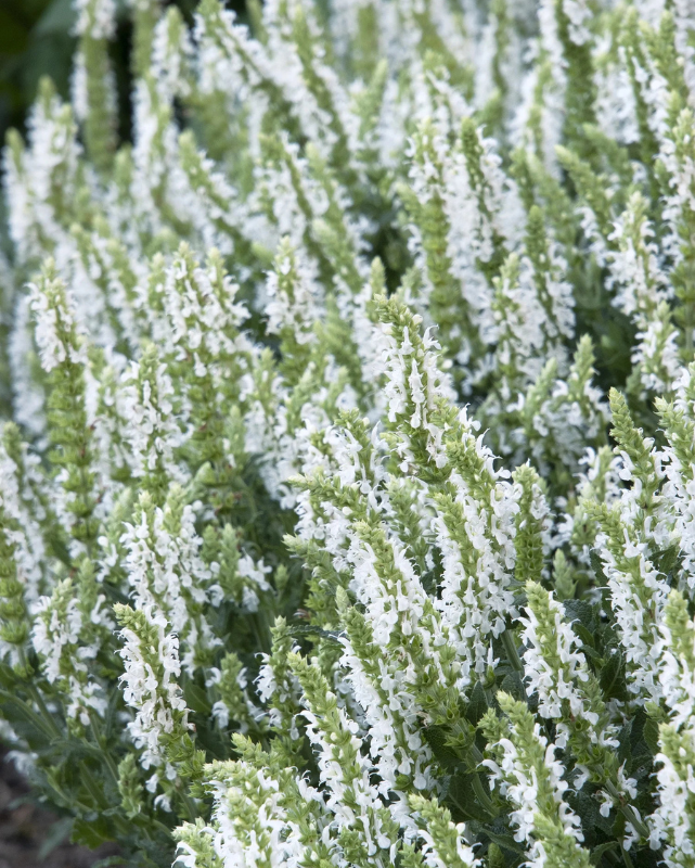 Snow Hill Sage has masses of beautiful spikes of white flowers rising above the foliage from late spring to early summer, which are most effective when planted in groupings. The flowers are excellent for cutting. Its fragrant narrow leaves remain green in color throughout the season.