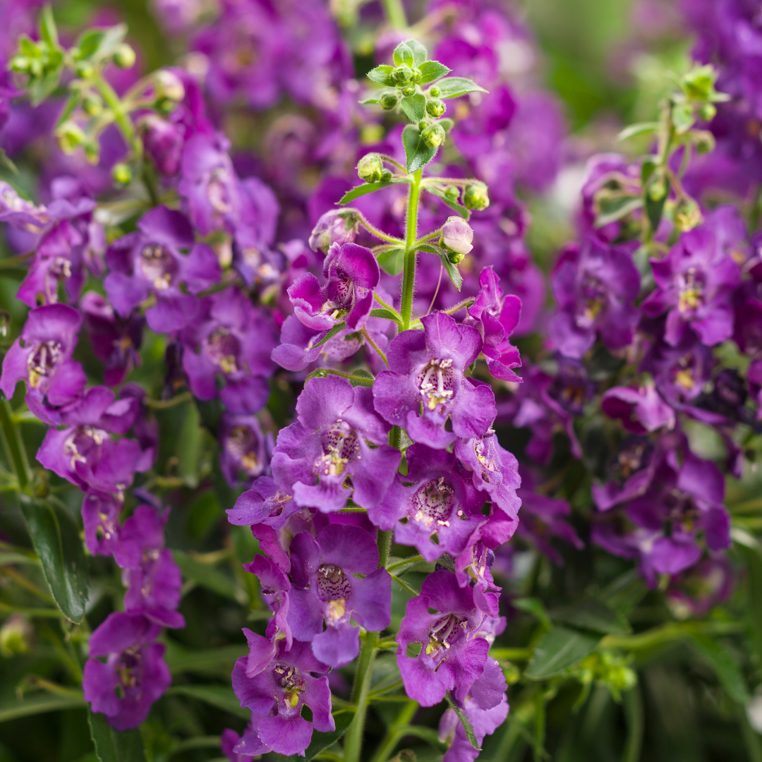 Angelface® Blue Angelonia has masses of beautiful spikes of royal blue pea-like flowers rising above the foliage from late spring to late summer, which are most effective when planted in groupings. The flowers are excellent for cutting. Its small fragrant narrow leaves remain green in color throughout the year.