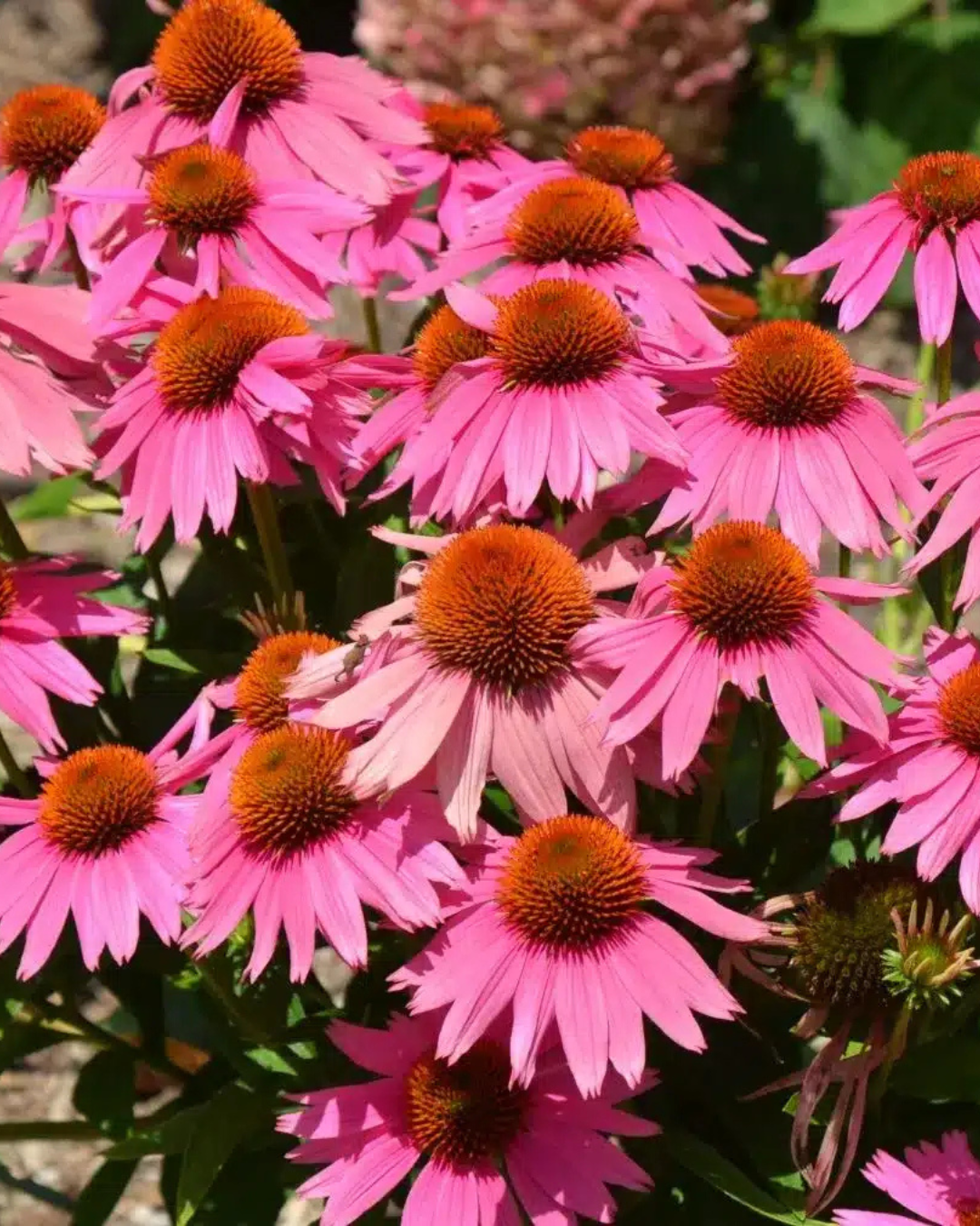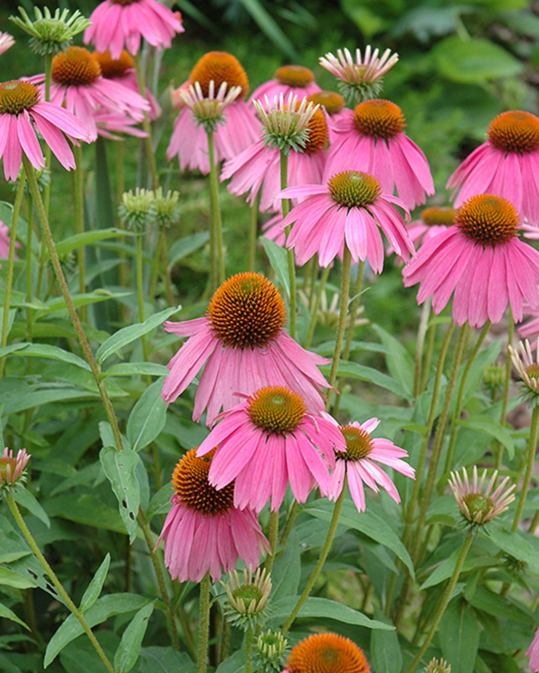 Kim's Knee High Coneflower has masses of beautiful lightly-scented pink daisy flowers with harvest gold eyes at the ends of the stems from mid summer to mid fall, which are most effective when planted in groupings. The flowers are excellent for cutting. Its pointy leaves remain forest green in color throughout the season.