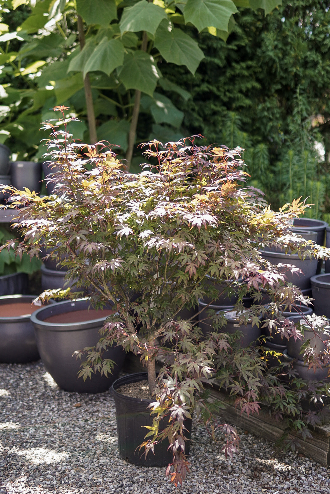 Possibly the most popular of all feature trees for the home landscape, with rich burgundy-purple palm-shaped foliage all season long and a very artistic spreading growth habit; put it in the front yard and give it lots of room to grow