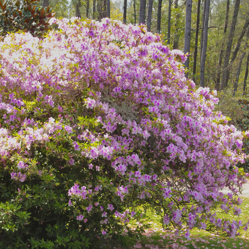 Description: This interesting, compact evergreen shrub is bathed in clusters of beautiful purple and white striped blooms that will emerge all season; an excellent choice to mass in groupings as a focal point of the garden; must have rich acidic soil.