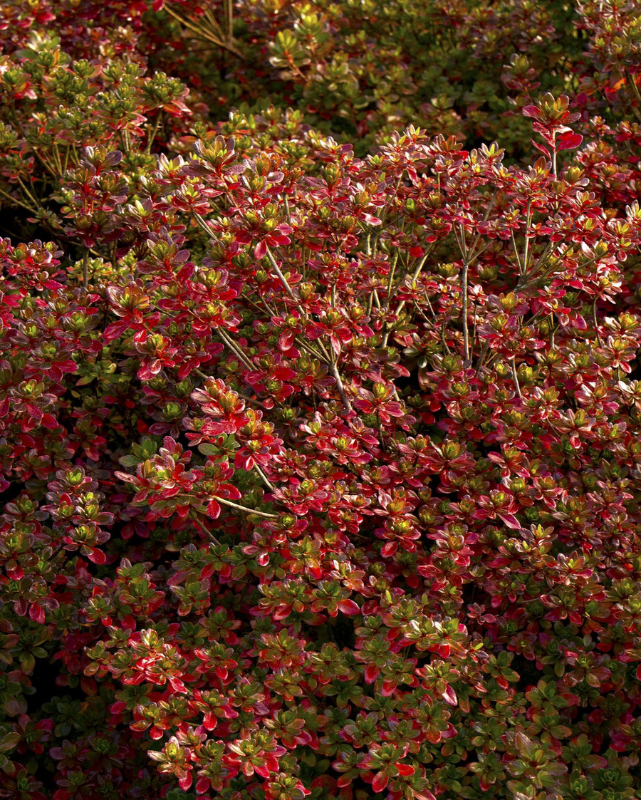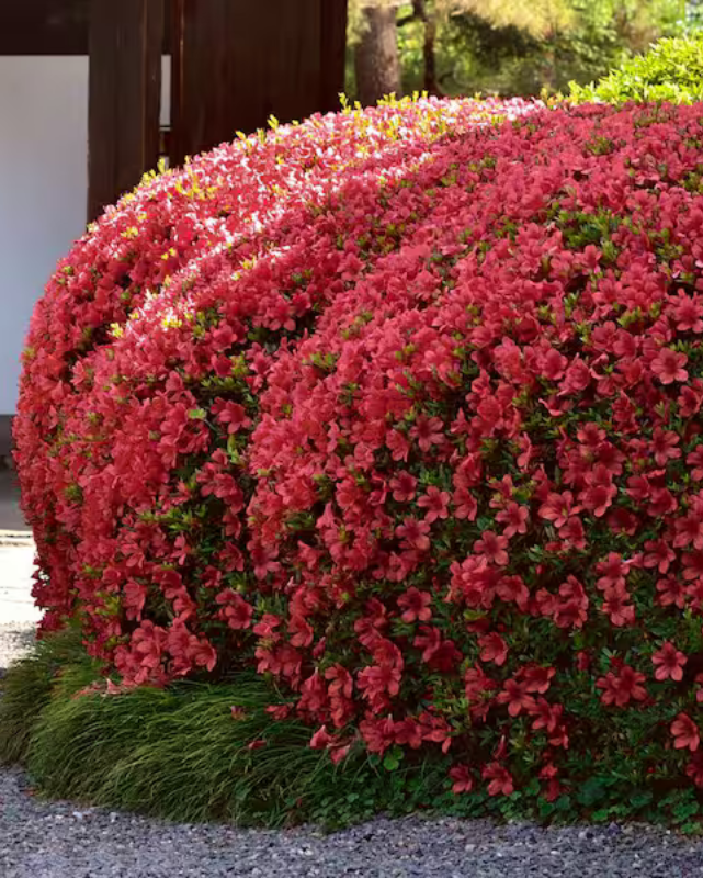 Striking crimson blooms cover this attractive dense compact shrub in mid spring; foliage is tiny giving a fine texture; ideal when massed in borders, foundation plantings, or low screening; absolutely must have well-drained, highly acidic and organic soil.