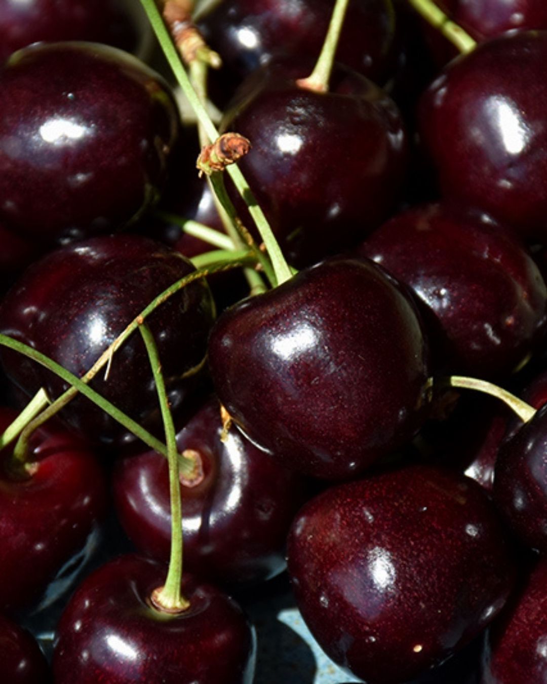 Bing Cherry is a large tree that is typically grown for its edible qualities. It produces dark red round fruit (technically 'drupes') with black overtones and crimson flesh which are usually ready for picking from early to mid summer. Note that the fruits have hard inedible pits inside which must be removed before eating or processing. The fruits have a sweet taste and a juicy texture.