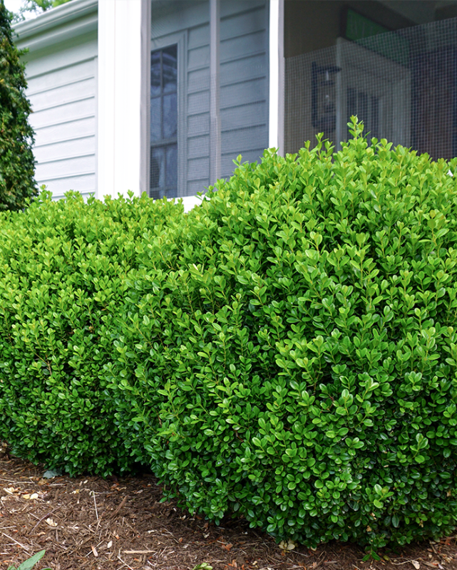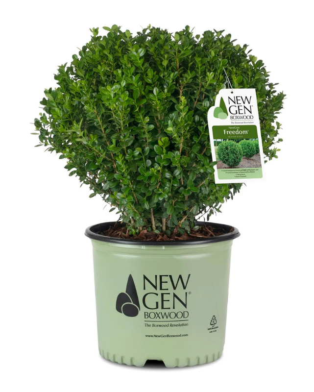 Description: A sturdy, vigorous boxwood with beautiful glossy green foliage; selected for its good resistance to boxwood blight and leaf miner; slightly taller than wide with a dense, uniform, bushy habit; an exceptional choice for formal and residential landscapes.