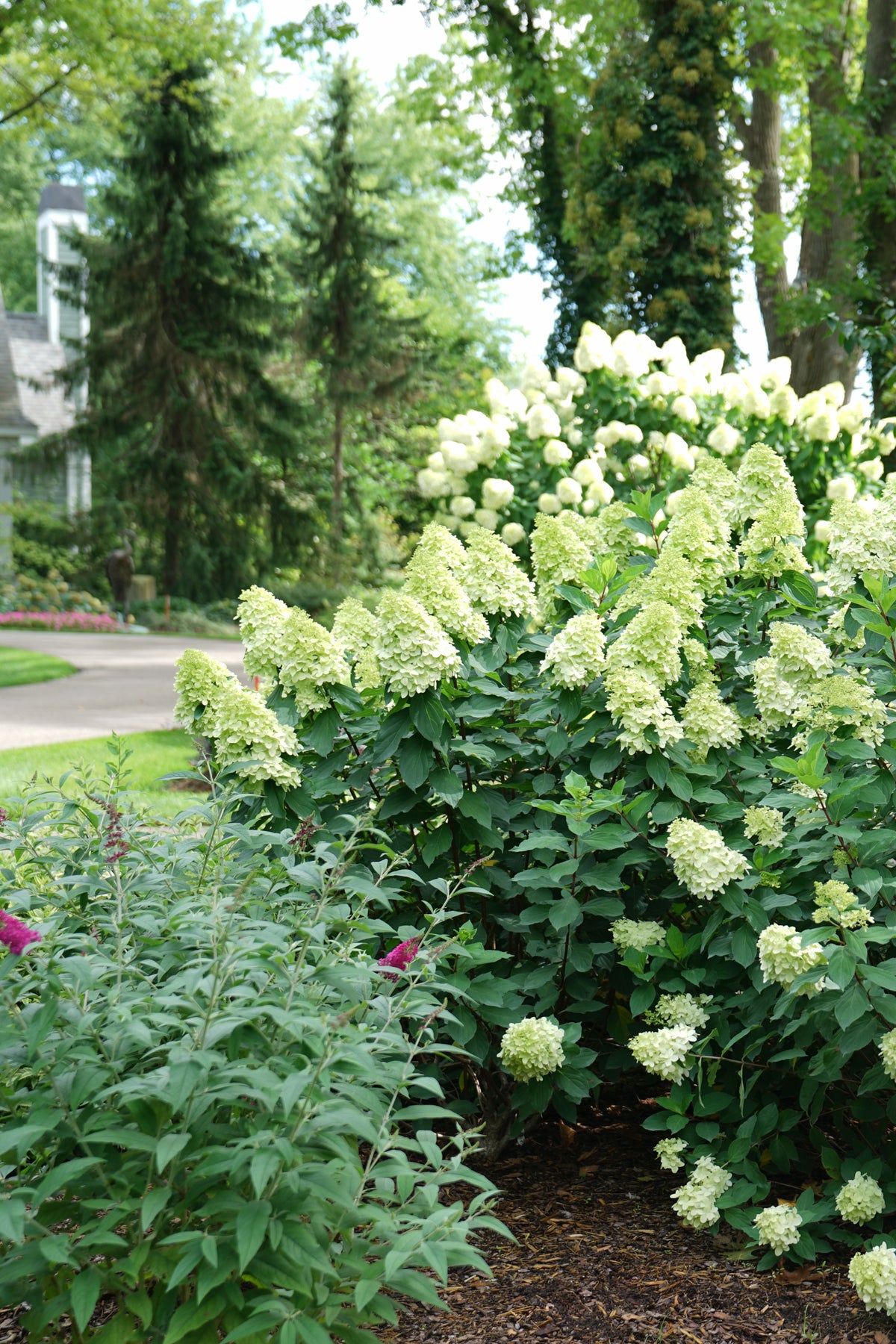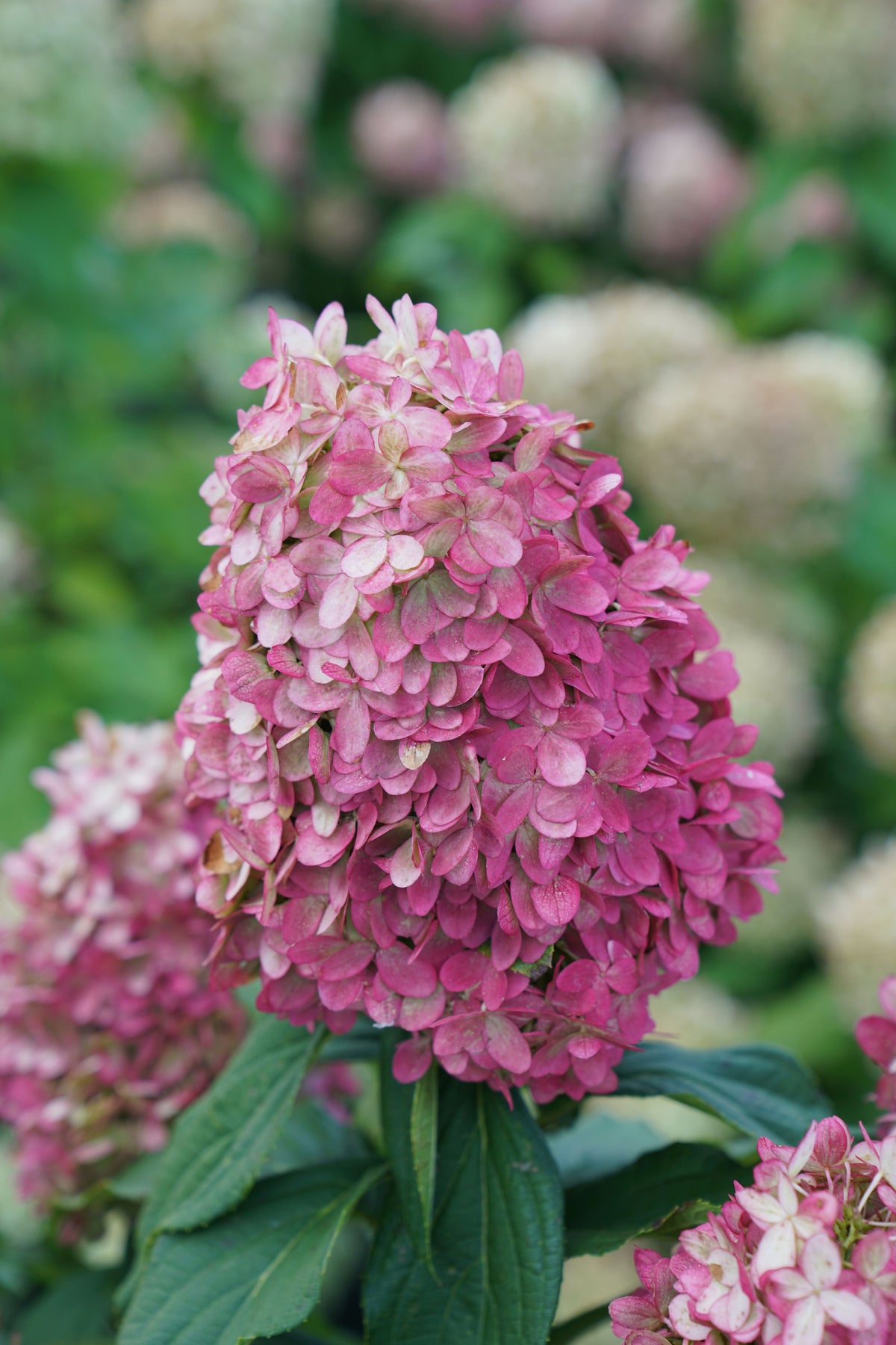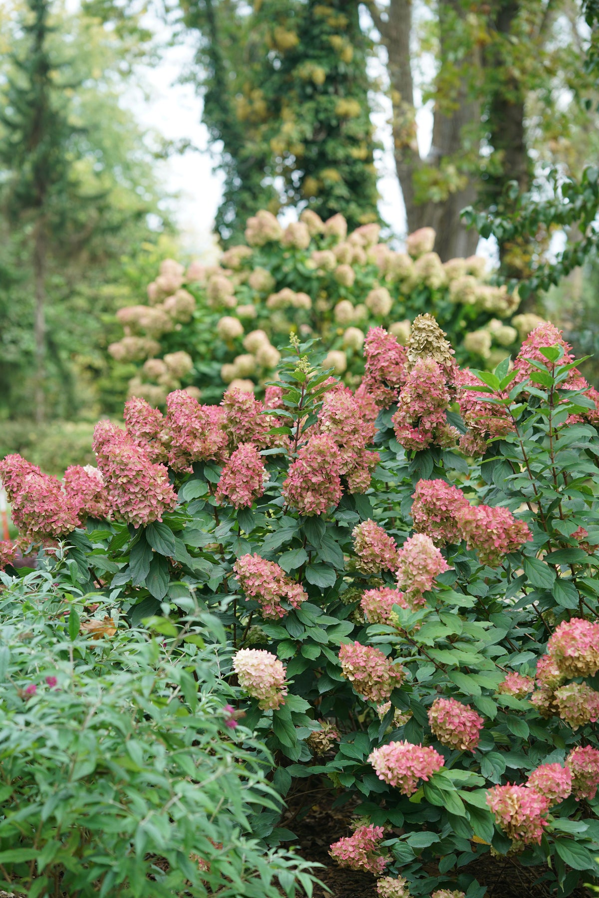 The next generation of 'Limelight', this improved variety features enormous, dense upright flower heads that start out a soft lime green, then develop vivid pink and red tones; blooms much earlier, creating a longer display; a stunning border accent.
