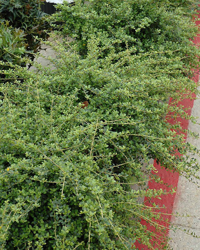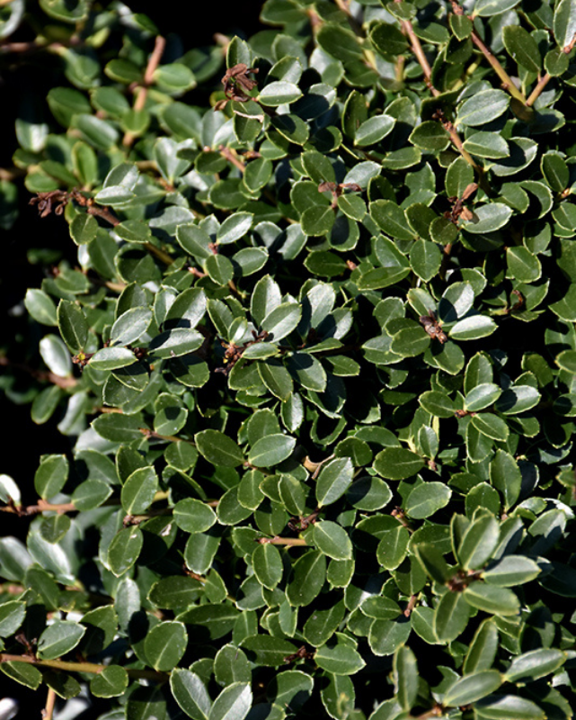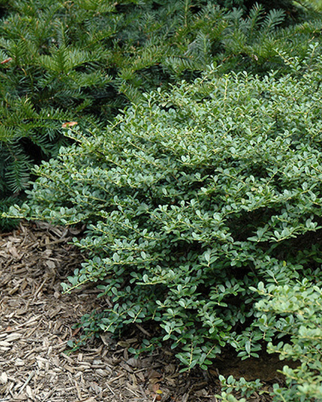 A dwarf evergreen shrub with a naturally compact, rounded shape, ideal for massing and garden use, popular in the South, tiny leaves add aesthetic value, takes pruning very well; does best in evenly moist, acidic soils