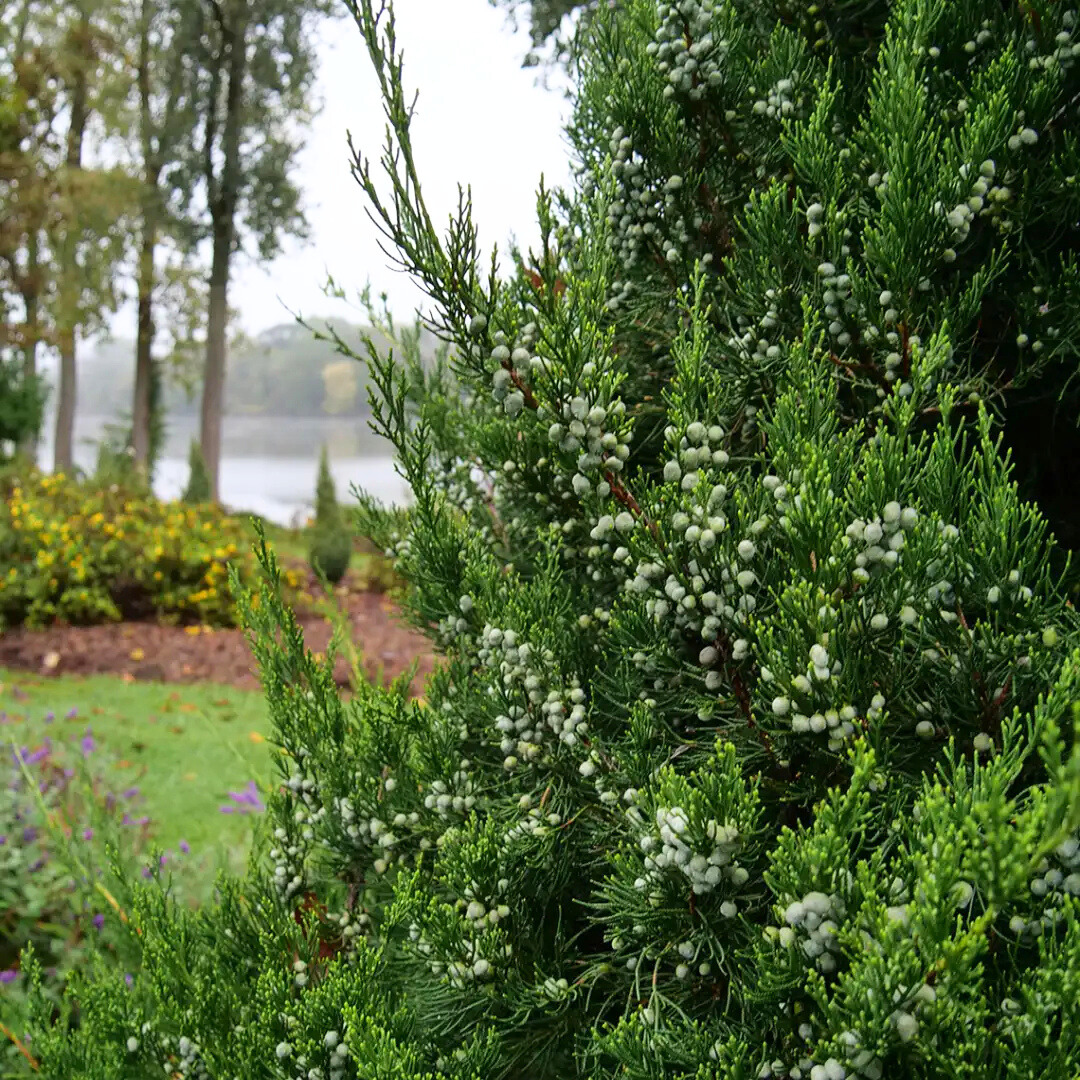 Gin Fizz® Juniper is primarily grown for its highly ornamental fruit. It features an abundance of magnificent bluish-green berries with silvery blue overtones from early summer to late winter. It has attractive green evergreen foliage which emerges light green in spring. The scale-like sprays of foliage are highly ornamental and remain green throughout the winter.