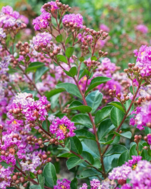 This beautiful dwarf crapemyrtle produces volumes of rich, bright purple blooms, over dark green, glossy foliage; early blooming, and has excellent mildew resistance; a captivating focal point for the garden or border; also good for container planting