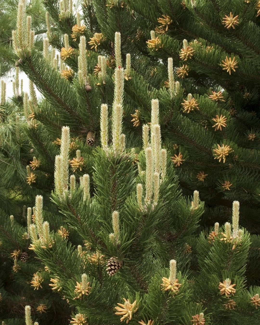 This relatively slow growing upright tree has very stiff green needles; bright white candles jump out against the green needles in the spring; excellent as an accent or can be massed to form a tall screen.