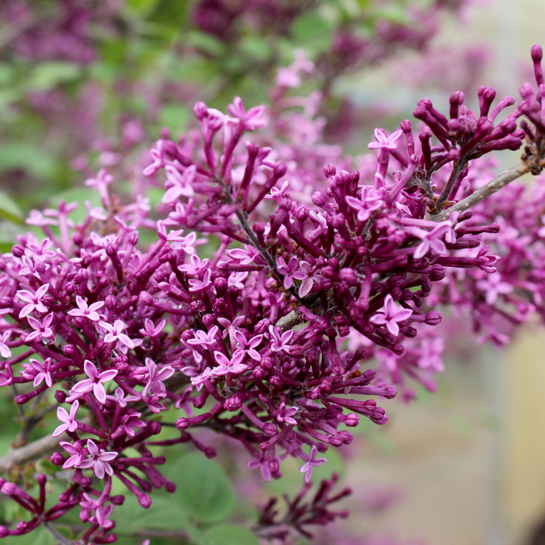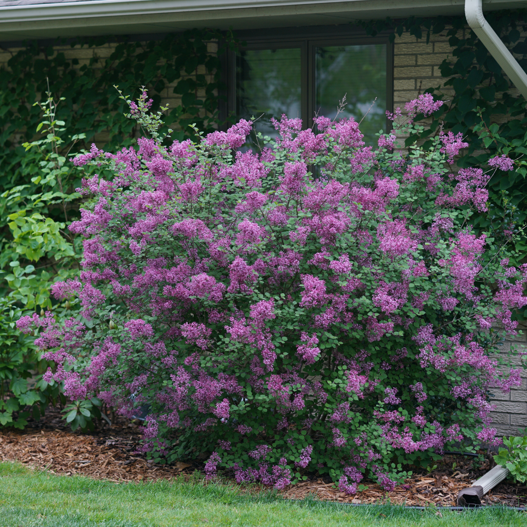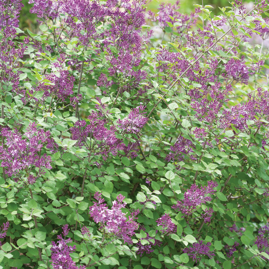 A dwarf hybrid lilac that's just the right size for the garden, producing a plethora of sweetly fragrant lilac-purple flowers in spring; reblooms constantly throughout the summer showing color until fall.