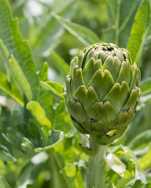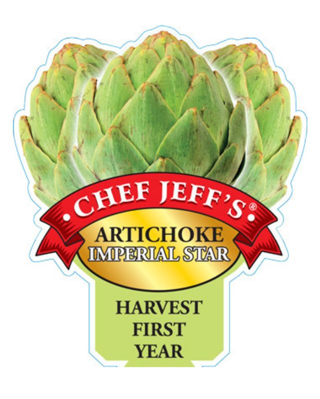 Description: Artichoke Green Globe is a tasty perennial vegetable Harvest First Year Imperial Star unlike other varieties is a first-year bearing variety that will yield 3-4" buds in late summer. The sweet mild flavored, mostly green with a tinge of purple flower buds are nearly spineless for easier harvesting. . Boil or steam the chokes and peel off the meaty petals to dip in butter or Hollandaise sauce, then remove the "choke" and reveal a tender core that's absolutely delicious. Artichokes are also an elegant addition to salads steamed and dressed with vinegar, olive oil and herbs.