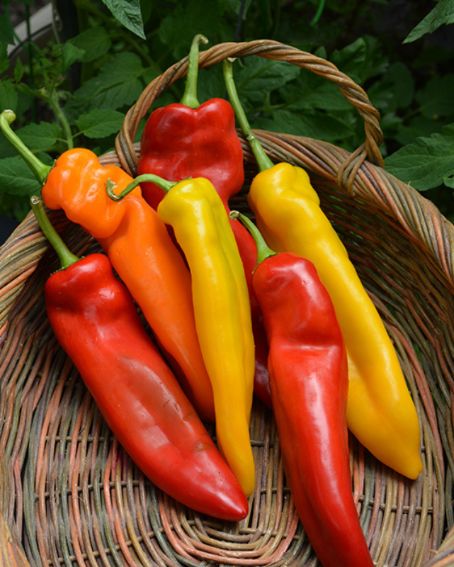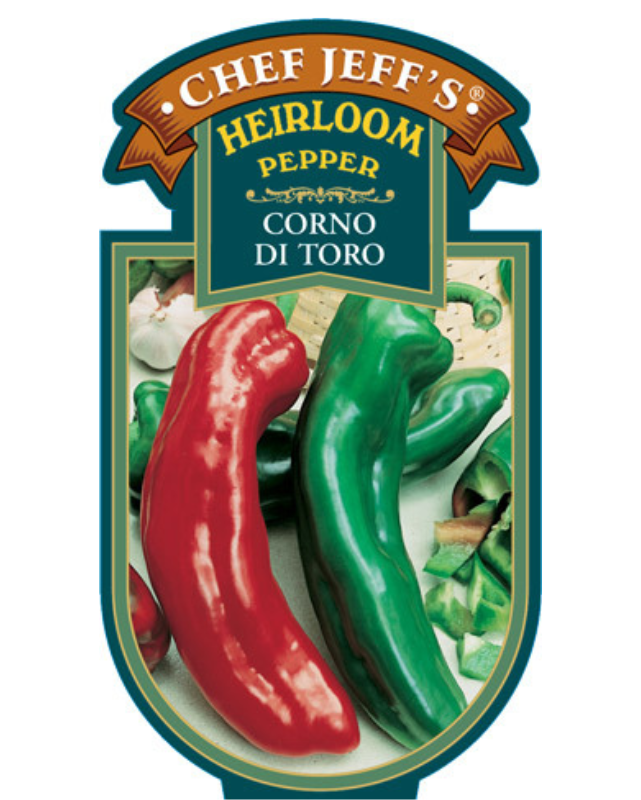 Description: An heirloom pepper from Italy, the name of this pepper means ‘horn of the bull’. Fruits turn a stunning red when ripe and have a long, curved, tapering, non-bell shape and are 6-10 inches long x 1 ½ inches wide at the shoulder. The largest of the sweet stuffing peppers, it is great fresh in salads, cooked or roasted on the grill.