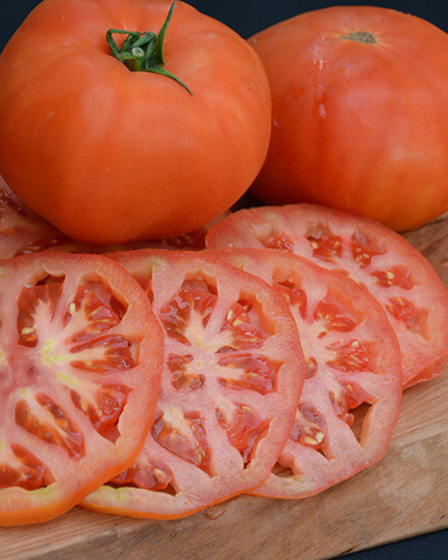 Description: Large, vigorous vines produce an abundance of superior flavored tomatoes, just the right size for a hamburger! Large, red, 8-12 ounce fruit with a solid and meaty flesh make this tomato a favorite for both taste and production. One of the earliest full-sized slicing tomatoes to mature. Multiple disease resistance.