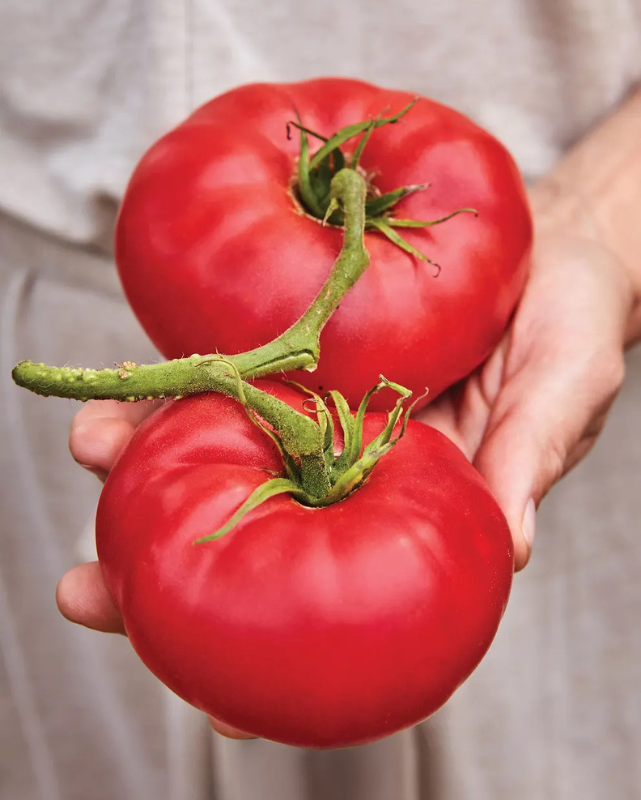 Description: Each year when I plant this tomato I think of Radiator Charlie the developer of this tomato. The owner of a radiator repair shop in the 1930s Charlie was facing bankruptcy. He had no plant breeding experience, yet he cross-bred 4 Varieties to develop this big, tasty tomato, sold 1000 plants at $1 each over six years and paid off  his mortgage. Fruits of mortgage Lifter can average 2-1/2 Lbs. and may reach 4lbs when grown well. Plants are very productive and disease-resistant, and continue to bear until frost. These large, slightly flattened, pink-red tomatoes are meaty and flavorful with few seeds.