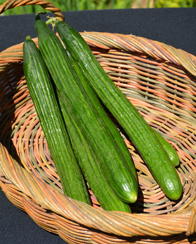 Description: This Japanese cucumber is a fun addition to your garden. It produces early and slender fruit. I enjoy the crisp fresh flavor of the glossy thin skinned 11” to 12” long fruit. It is an excellent bitter free cucumber that I add to salads. For straighter fruit grow on a trellis or stake the plant.