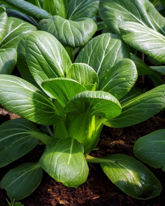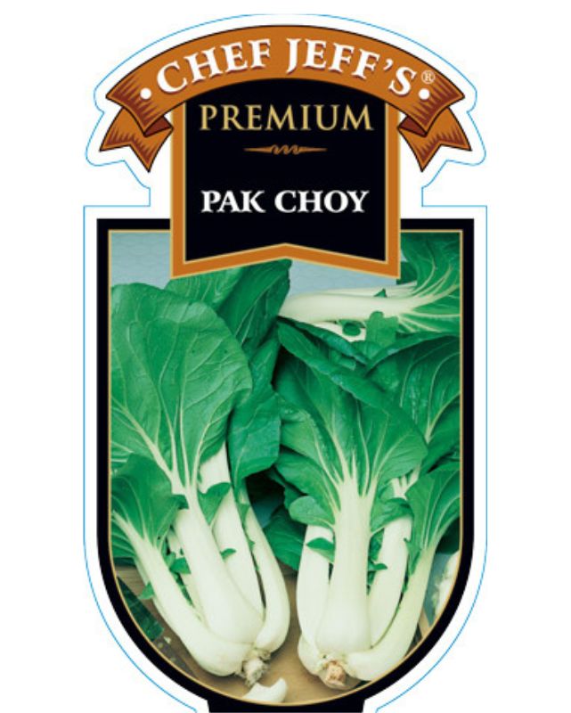 Description: No matter how you spell it, this graceful vegetable has a pure white, thick, upright stalk with frilly, dark green leaves.  It is a striking Chinese vegetable that has bright white veins running through the green leaves and down into the stalk.  The mild, peppery taste and crunchy texture of the stalk is often used in stir-fries.  I like to use the juicy, crunchy leaves in salads as they stay crispier than lettuce.  Pak Choy is a quick growing plant that can be used as an ornamental accent in mixed decorative containers for a bold element.