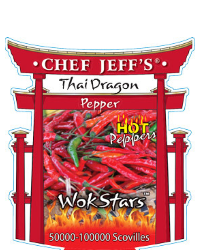 Description: Thai Dragon is a spicy hot chili pepper used in Asian dishes. The 2-3” long by ½” wide slender peppers turn from green to dark red at maturity. The peppers grow pointing upward on 2-3’ tall plants that can produce up to 200 chiles in a single season. For bushier plants pinch the top of plants when young.