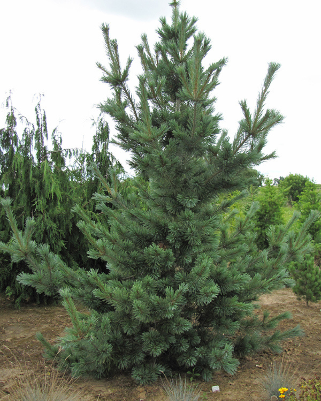 Cesarini Blue Limber Pine is primarily valued in the landscape for its distinctively pyramidal habit of growth. It has attractive silvery blue evergreen foliage. The needles are highly ornamental and remain silvery blue throughout the winter. The shaggy gray bark adds an interesting dimension to the landscape.