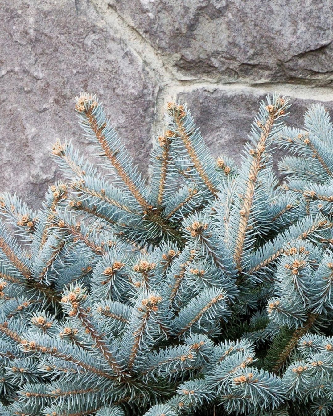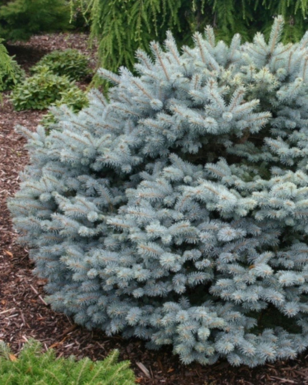 A small, dense globe-shaped shrub, very unlike the species, as a mounded form that eventually becomes a compact and dense Christmas tree-like shape, adaptable and hardy; intensely blue needles, an excellent choice for form and color in the garden.