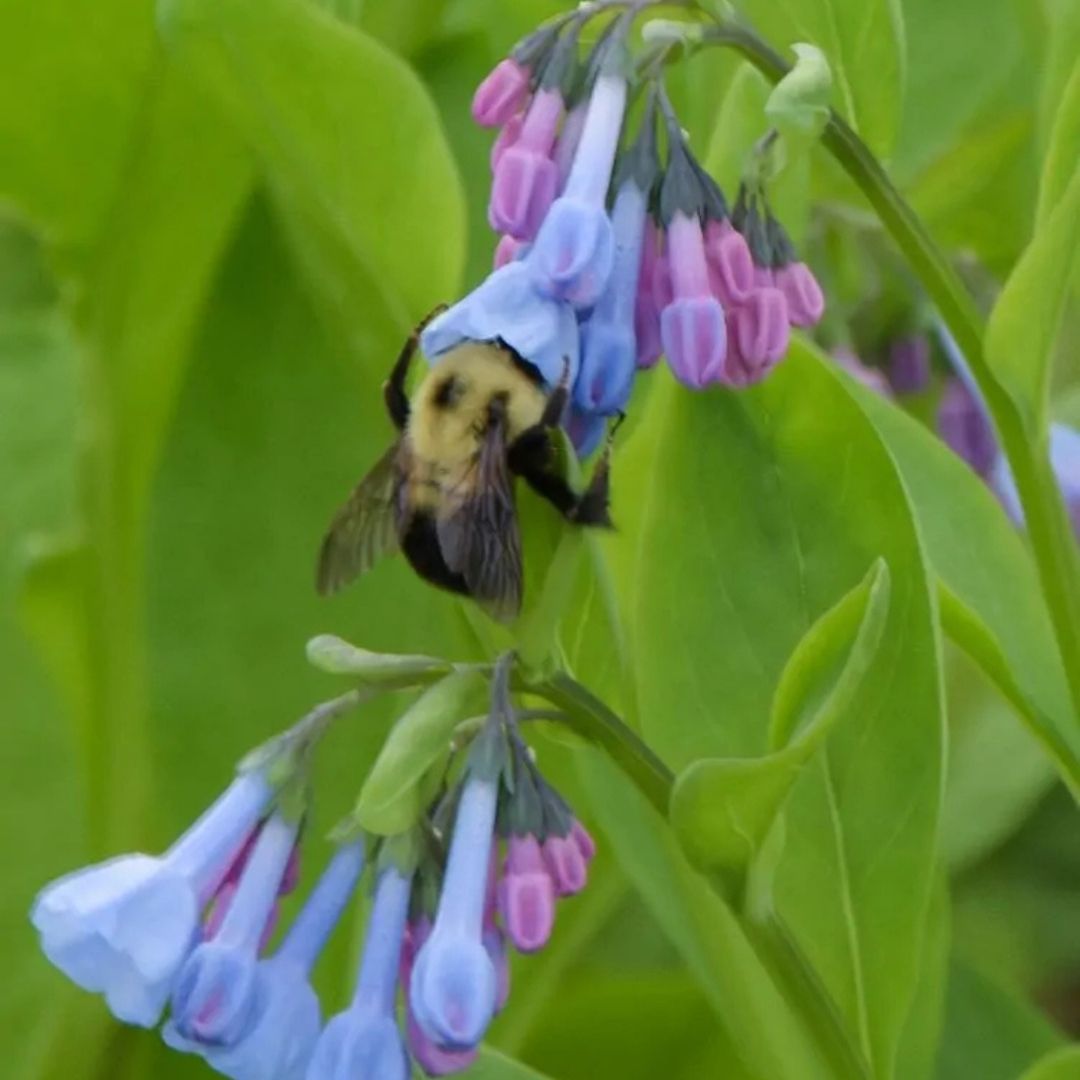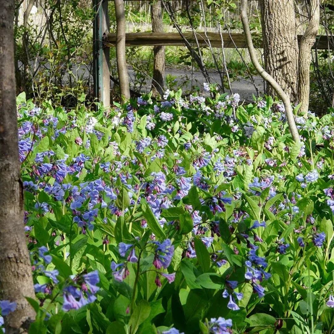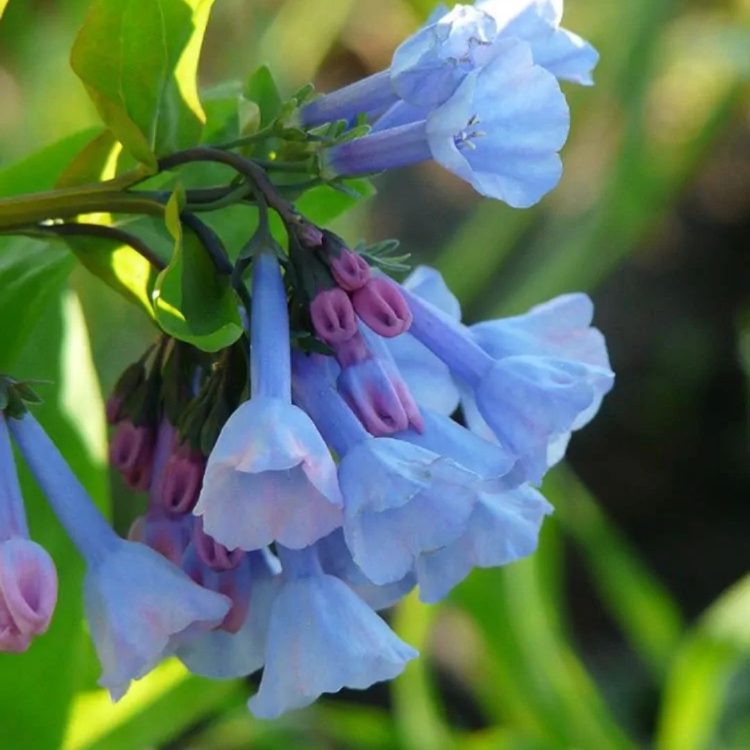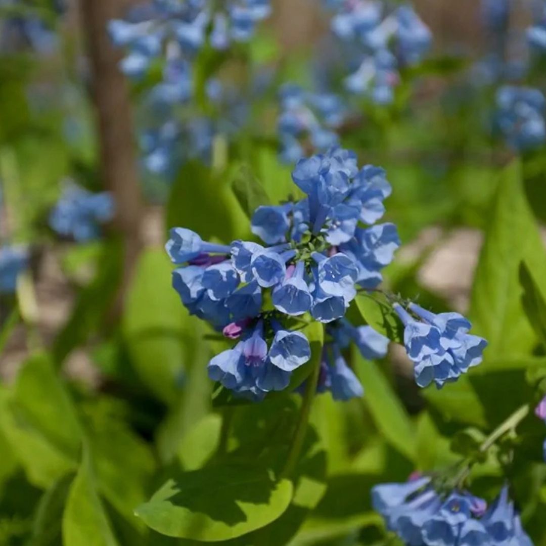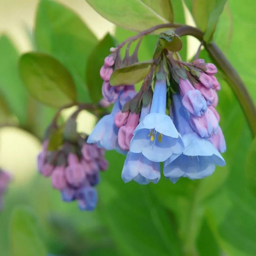 Virginia Bluebells features dainty nodding blue bell-shaped flowers at the ends of the stems from mid to late spring, which emerge from distinctive fuchsia flower buds. Its attractive pointy leaves remain bluish-green in color throughout the season.
